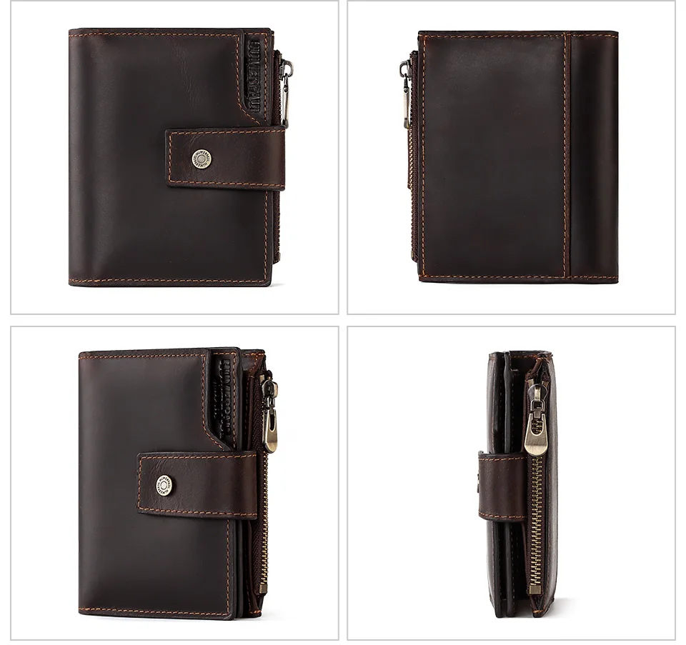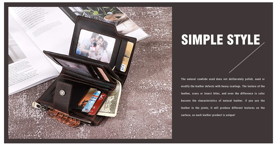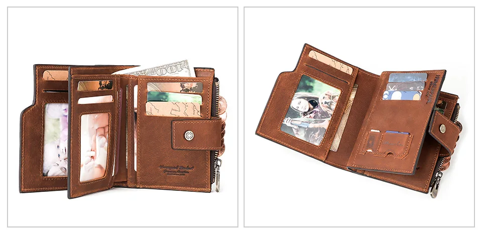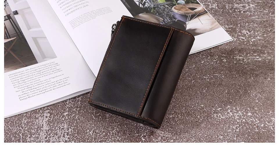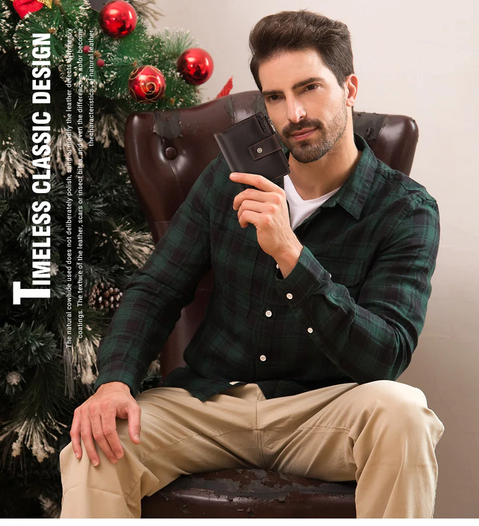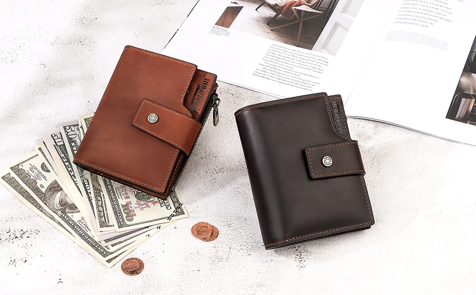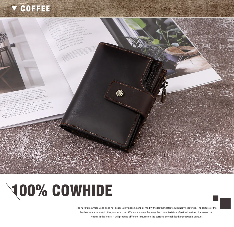Мужской бумажник KAVIS, винтажный короткий кошелек из коровьей кожи...
