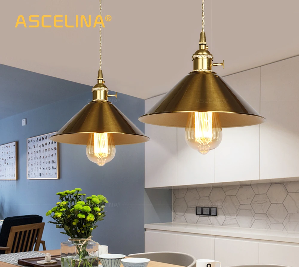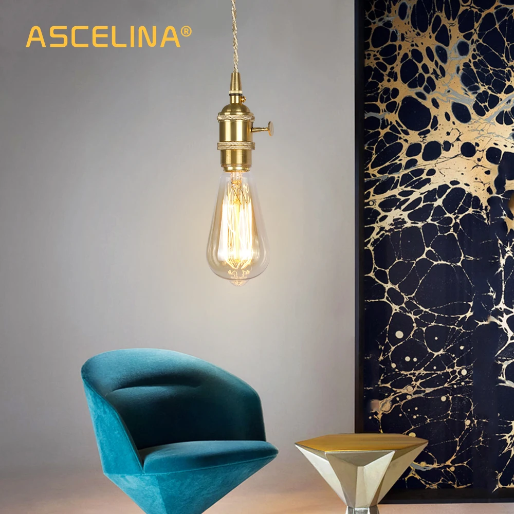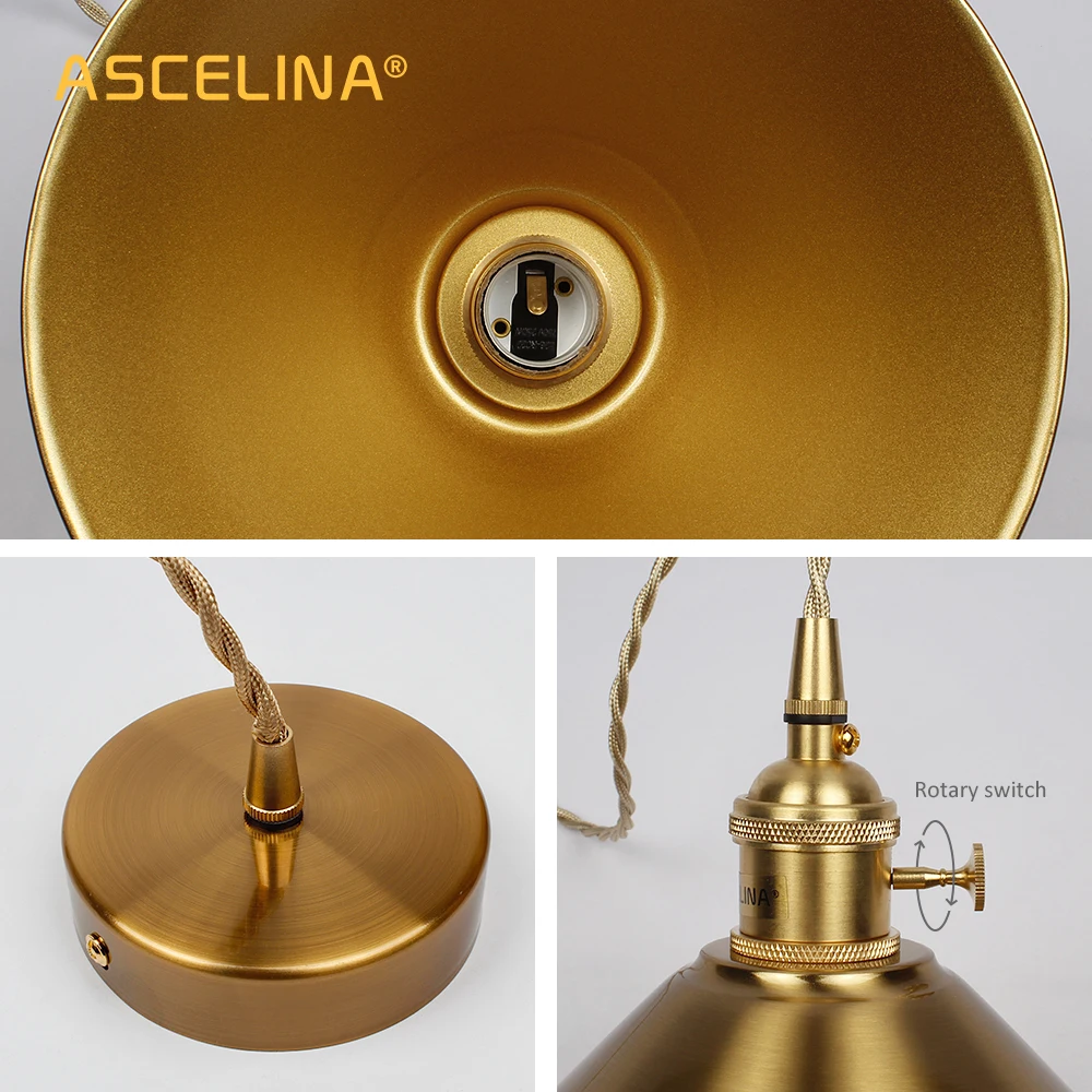 Винтажные подвесные светильники ASCELINA E27 с головкой, Подвесная лампа с вилкой золотого цвета, светодиодная Подвесная лампа для гостиной