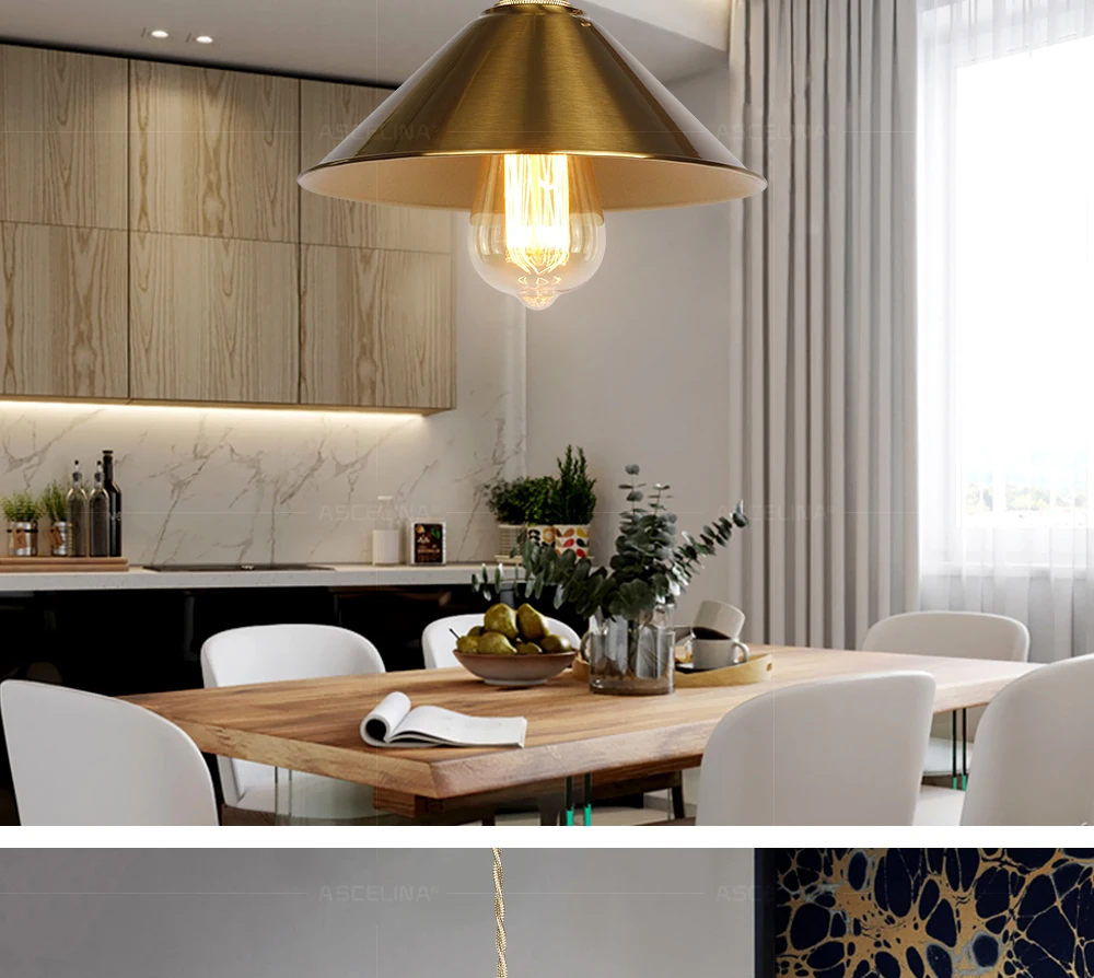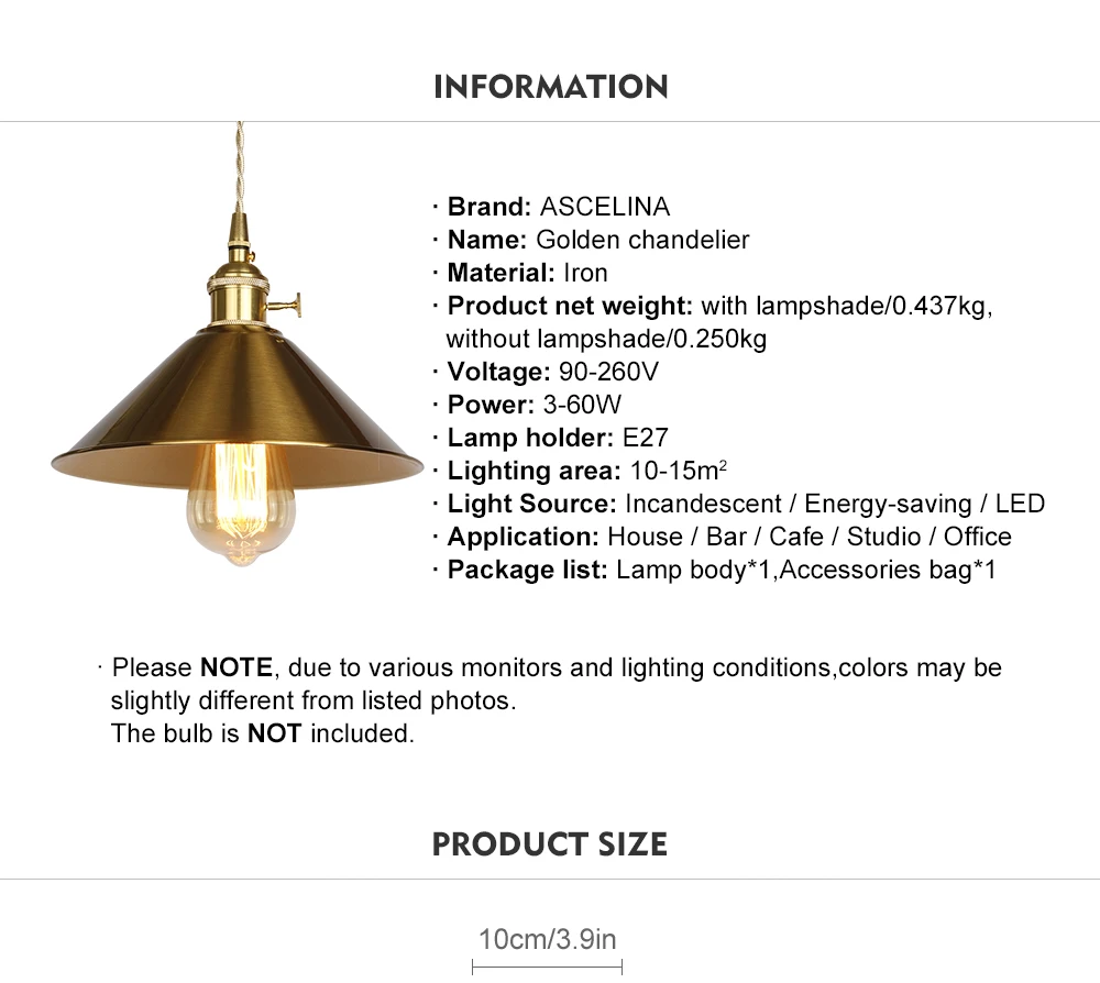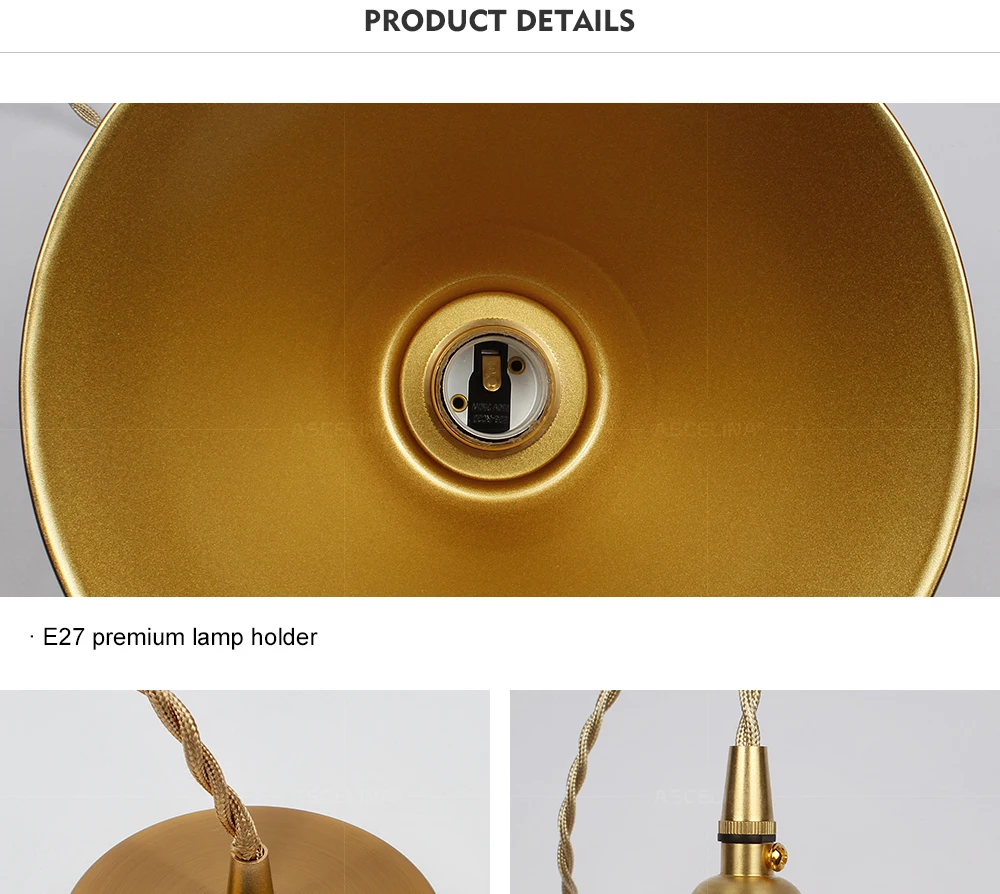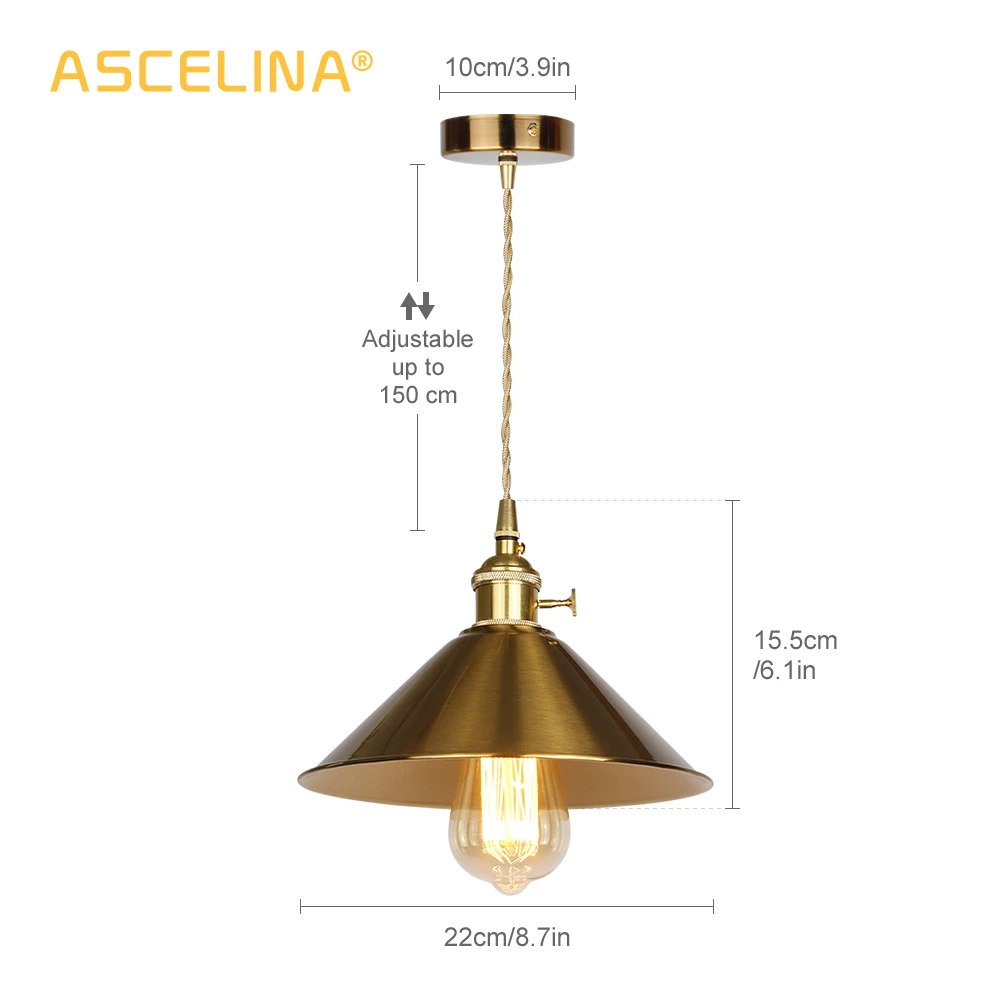 Винтажные подвесные светильники ASCELINA E27 с головкой, Подвесная лампа с вилкой золотого цвета, светодиодная Подвесная лампа для гостиной