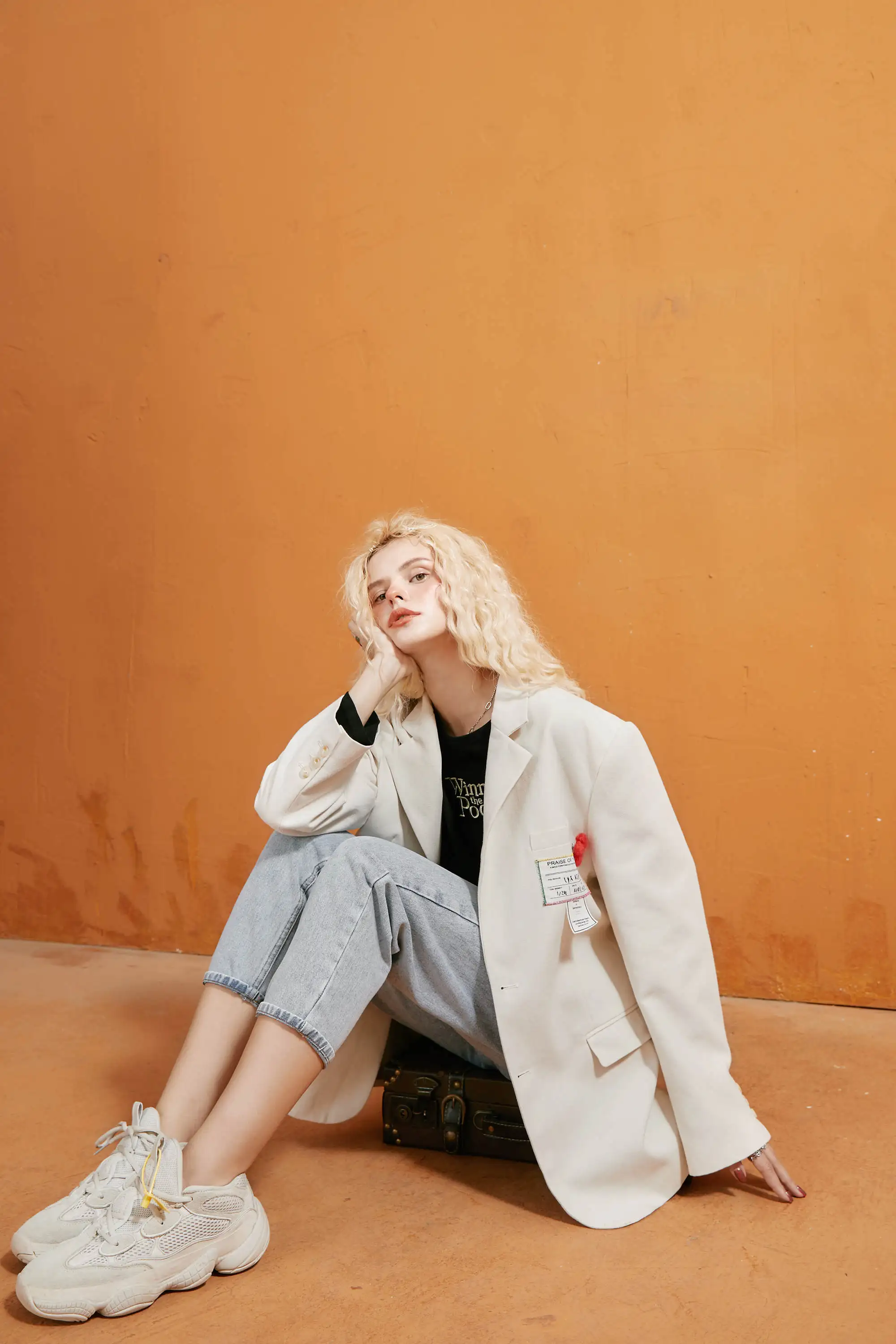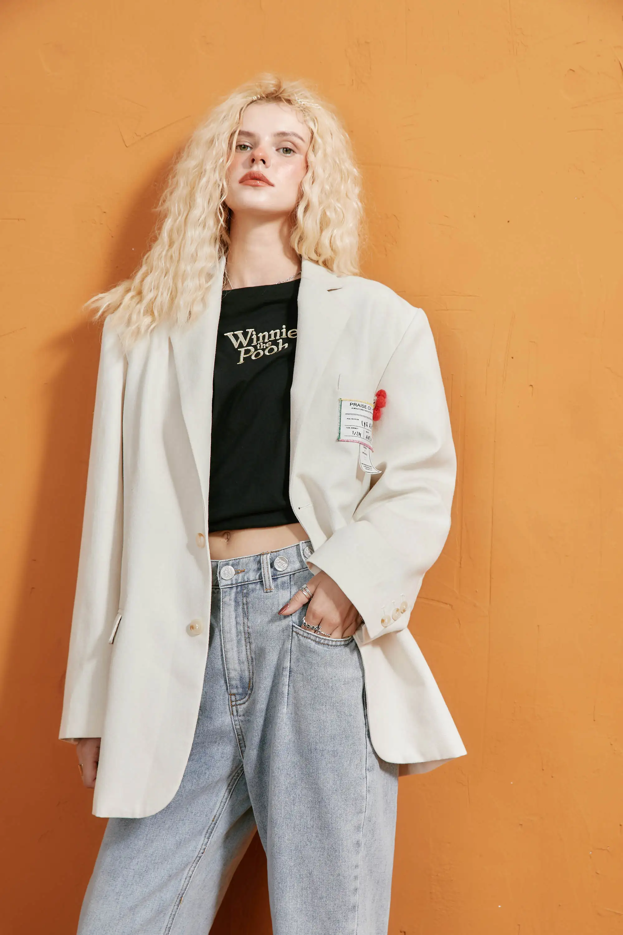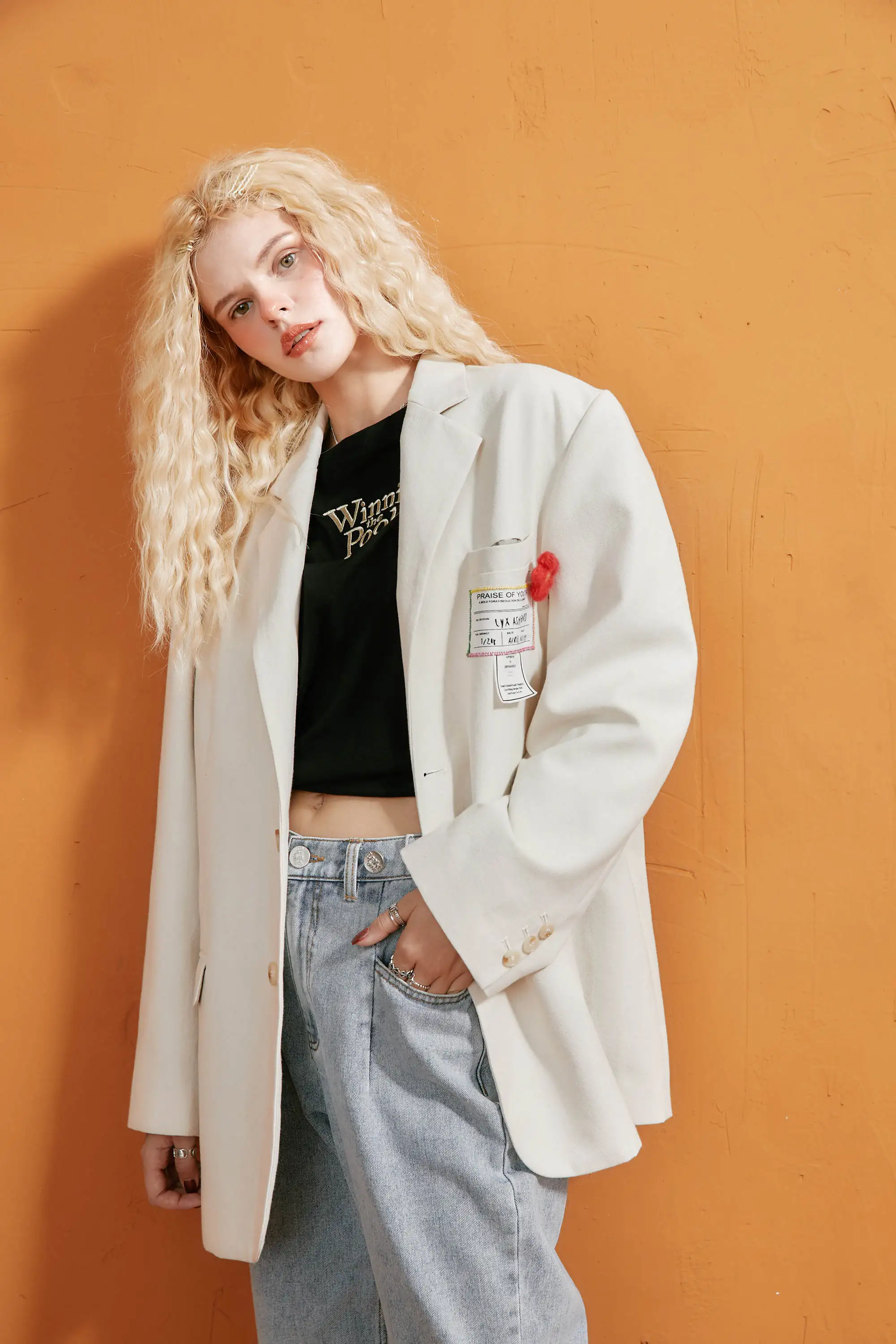 Женский блейзер ELFSACK, бежевый однобортный Блейзер в Корейском стиле, осенняя повседневная верхняя одежда больших размеров с аппликацией эльфа на осень 2020