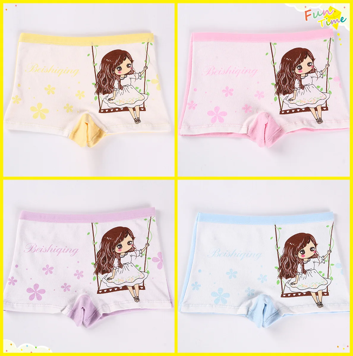 Новое поступление, нижнее белье для девочек Бесплатная доставка, модные детские хлопковые трусы с персонажами из мультфильмов для малышей Короткие трусы-боксеры, 4 предмета, для детей от 1 года до 7 лет