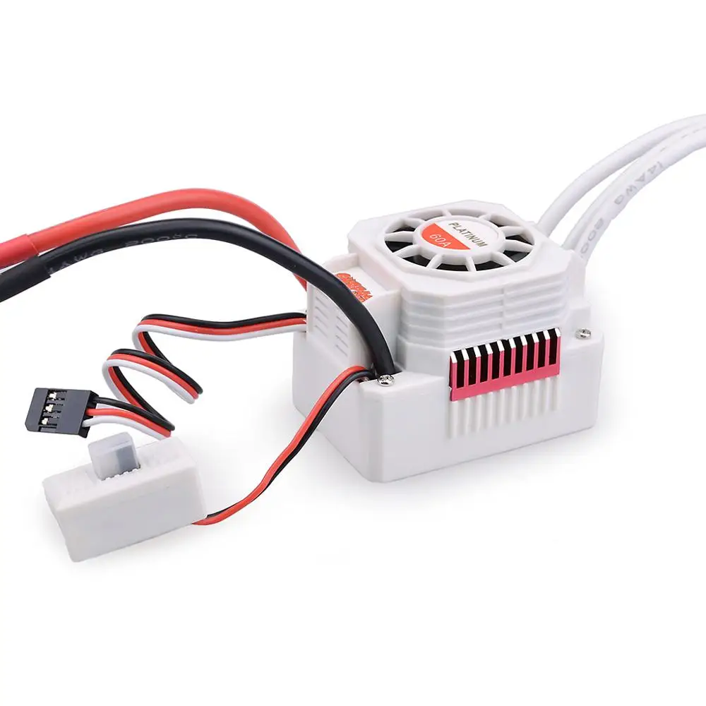 60A ESC Технические характеристики: Фирменное наименование: surpasshobby Наименование товара: водонепроницаемый ESC По-прежнему ток: 60A Ток срабатывания: 320A Батарея: 2-3S Li-Po / 4-9S Ni-MH Ni-Cd ОЦК выход: 5,8 V / 3A Штепсельные вилки источника питания: штепсельная вилка T Вилки двигателя: 4 мм разъем типа «банан» Размеры: 50*35*34 мм/2,0*1,4 * 1.3in (без кабелей)