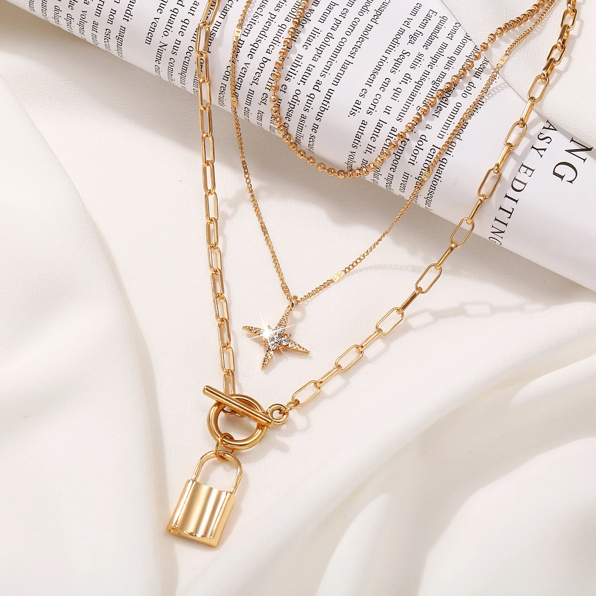 Женское Ожерелье-чокер в стиле панк, с крупными звеньями, многослойная подвеска в виде звезды, замок