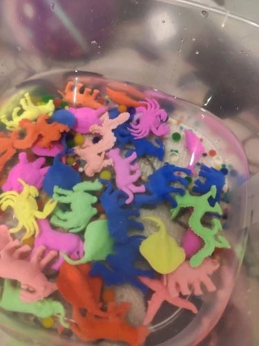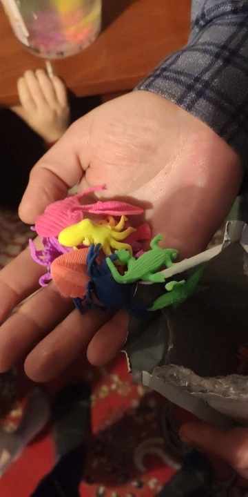 Всё соответствует описанию. Количество фигурок не считала, но думаю их там 10 штук. Я поняла так, что в воде фигурки должны увеличиться. Пока ребёнок не купался, поэтому не знаем. С виду фигурки красочные. Спасибо. 5 баллов!