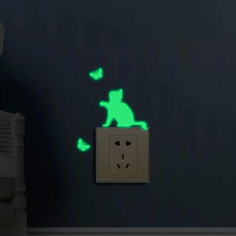 Флуоресцентная сказочная наклейка в виде луны и звезд, украшение для детской комнаты, украшение для дома, светящаяся наклейка, наклейка в виде кошки