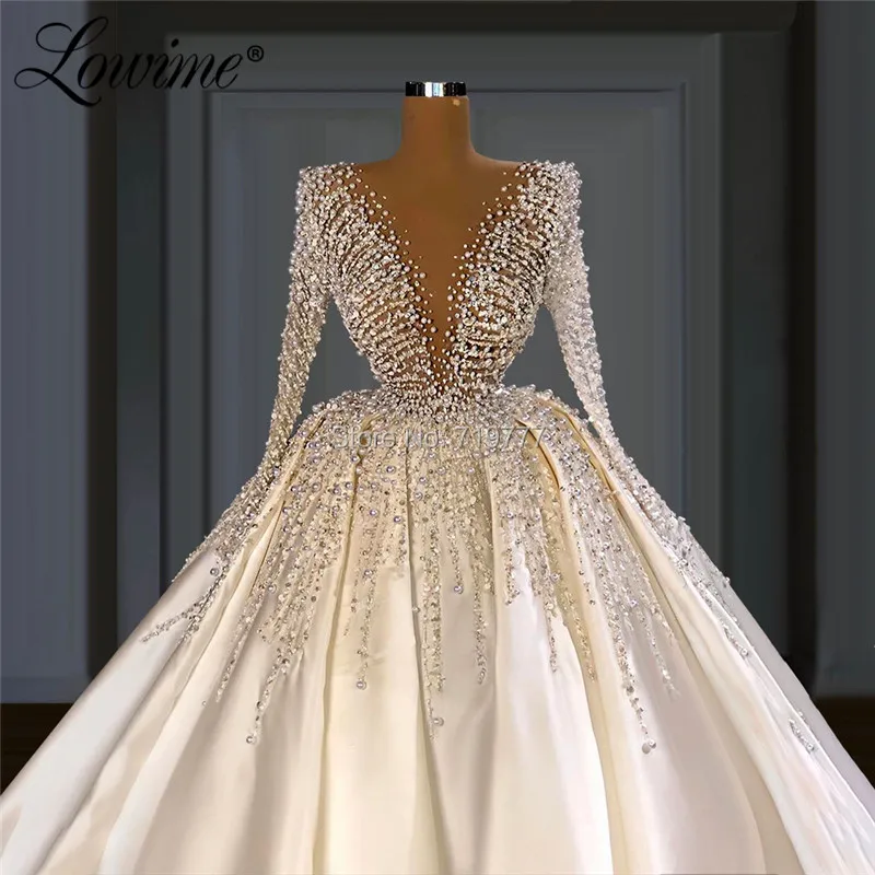 Роскошное атласное свадебное платье Дубай с жемчугом и бисером, длинное платье невесты 2020, мусульманский Саудовский Аравийское платье невесты