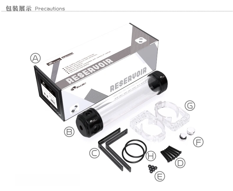 Цилиндрический резервуар BYKSKI с водяным охлаждением, длина Помпона 260 мм X 50 мм, G14, акриловый резервуар для охлаждения охлаждающей жидкости