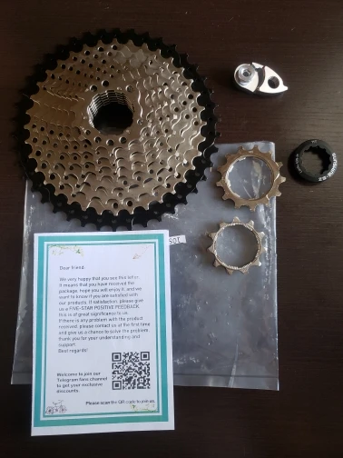 Кассета доехала довольно быстро. Заказал на 40 зубов, пришла вместе с удлинителем петуха. Ставил кассету под старый переключатель SLX M675 Shadow+ с длинной лапкой, подкрутил винт битеншон и норм, цепь в отлично залезает на 40 звезду без удлинителя и работает без проблем. На весах не взвешивал, но на в руках вид кассета тяжеловата по сравнению с кассетой XT на 36 зубов, но мне это не принципиально. Фиксирующее кольцо закрутилось нормально и плотно, но нет характерных, чётких защёлкиваний, при затяжке как на кассетах Shimano.