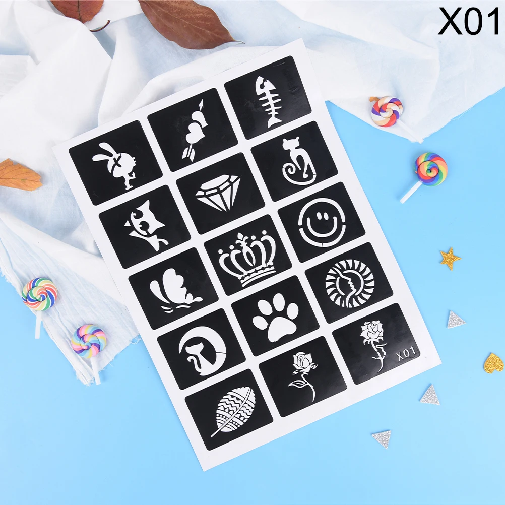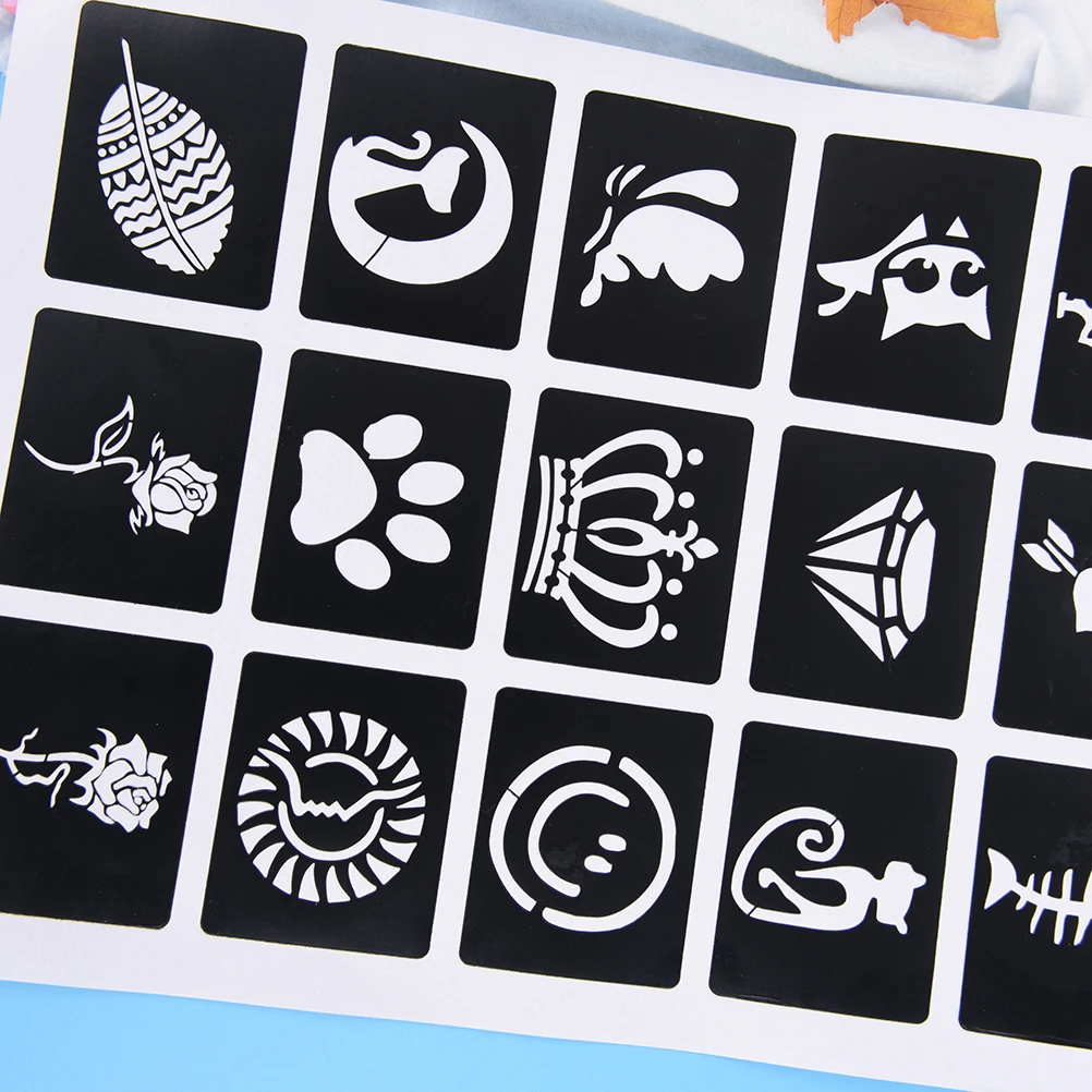 Особенности 1: мультфильм аэрография блеск тату загараОсобенность 2: Трафарет только два слояВ комплекте: 1 трафарет для татуировки