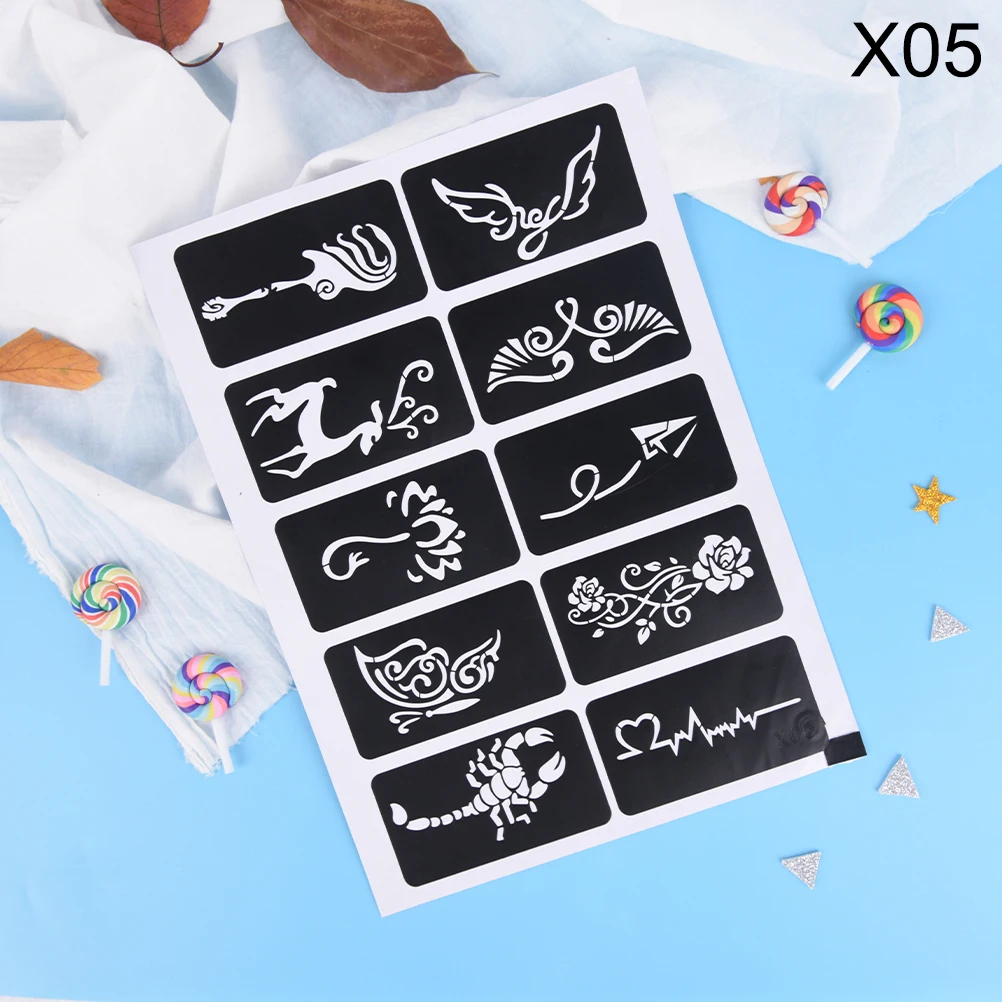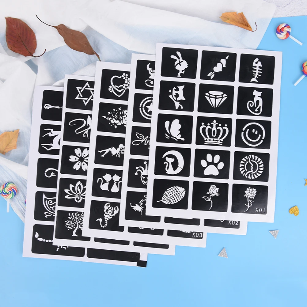 5 стилей аэрография блеск тату трафарет женские девочки; дети трафарет для рисования милый маленький обувь с украшениями в виде цветков и бабочек с рисунком тату трафарет