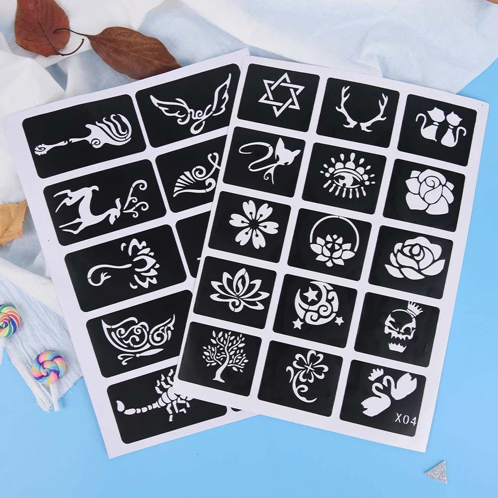 Трафарет для татуировок с милыми цветами аэрография блеск, трафарет...