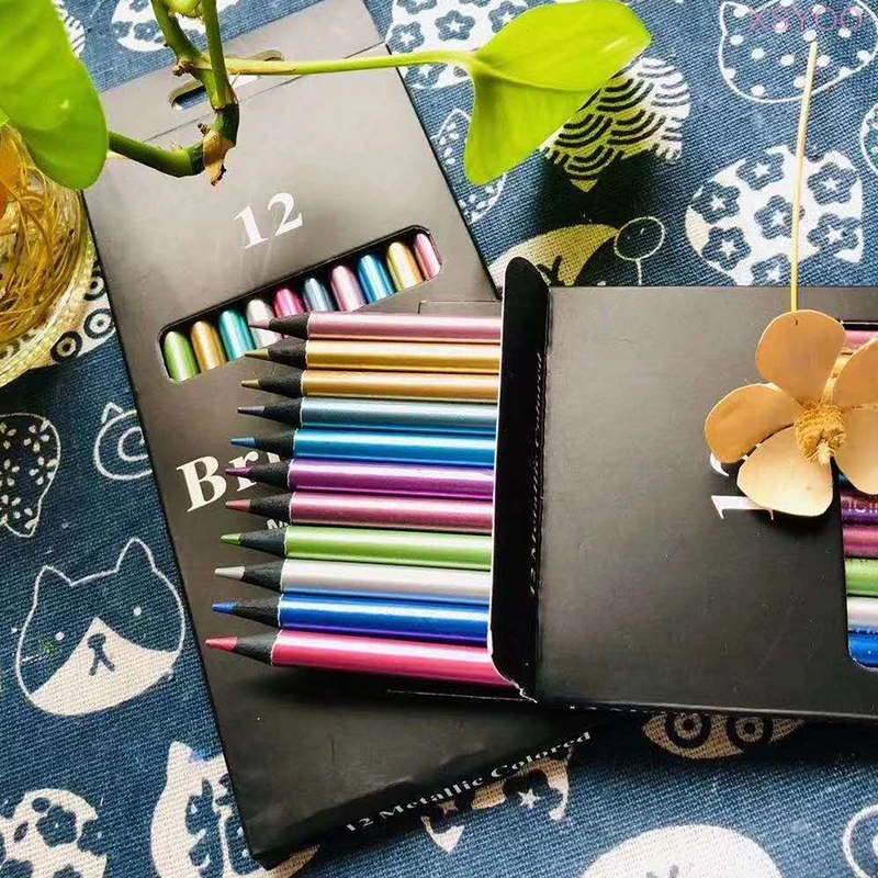 Brutfuner 12 цветов металлический карандаш для рисования эскиз набор мягкая древесина золотой цвет Карандаш Для канцелярские принадлежности для школьников, студентов товары для рукоделия