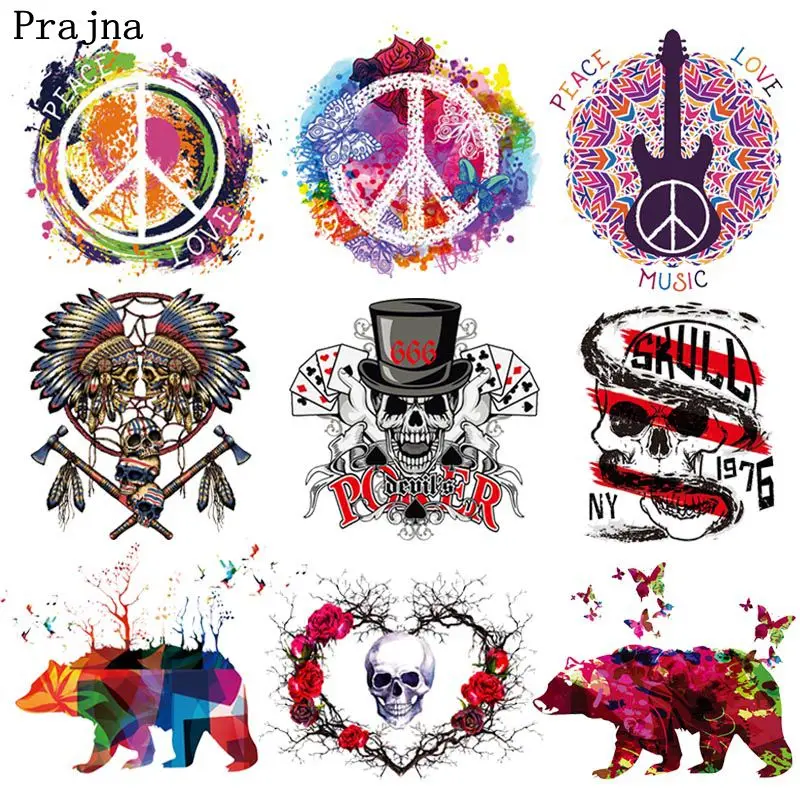Патчи Prajna с черепом, термонаклейки, наклейки для одежды, куртки,...