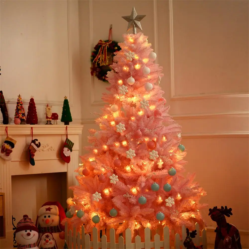Рождественская елка 1,2 м набор светодиодный светодиодными лампами красочный шар Декор вишневый цвет розовый орнамент для дома Рождество Новогодний декор для вечеринки