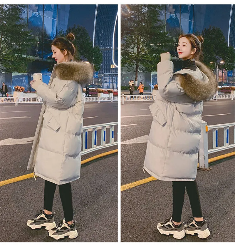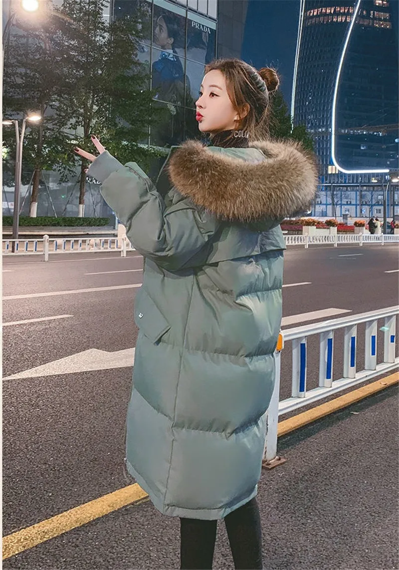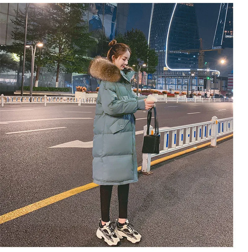Женская зимняя длинная теплая пуховая парка, толстое хлопковое паль...