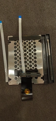 все работает, поставил в matebook 15, в комплекте запасной шлейф, салазки резиновые, металлический кейс и отвёртка. если ssd ставить только в резиновые проставки будет болтаться, в кейсе и с проставками не болтается, но нужно потрудиться затолкать диск в отведенное место. в общем доволен, цена одна из самых низких, дошел достаточно быстро, все работает. пятёрка!