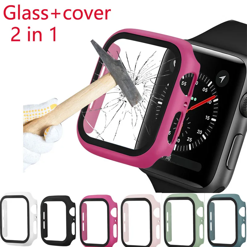 2 in1 для apple watch, версии SE стекло чехол 44 мм 40 мм пластиковая крышка 38/40 мм Защитное стекло для экрана серии 6/5/4/3/2/1 группа