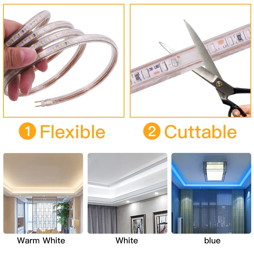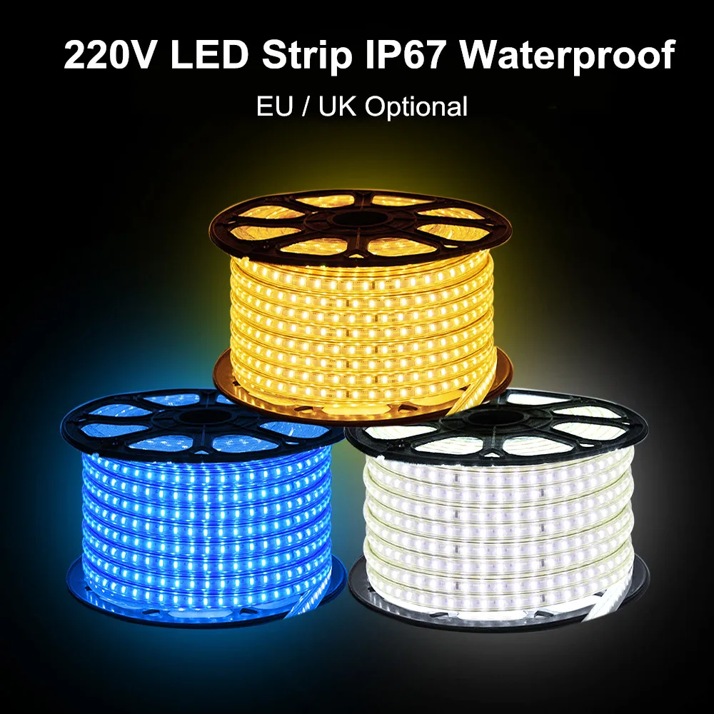 Лента светодиодная, 220 В переменного тока, водонепроницаемая, IP67, SMD 3014, 120 светодиодовм