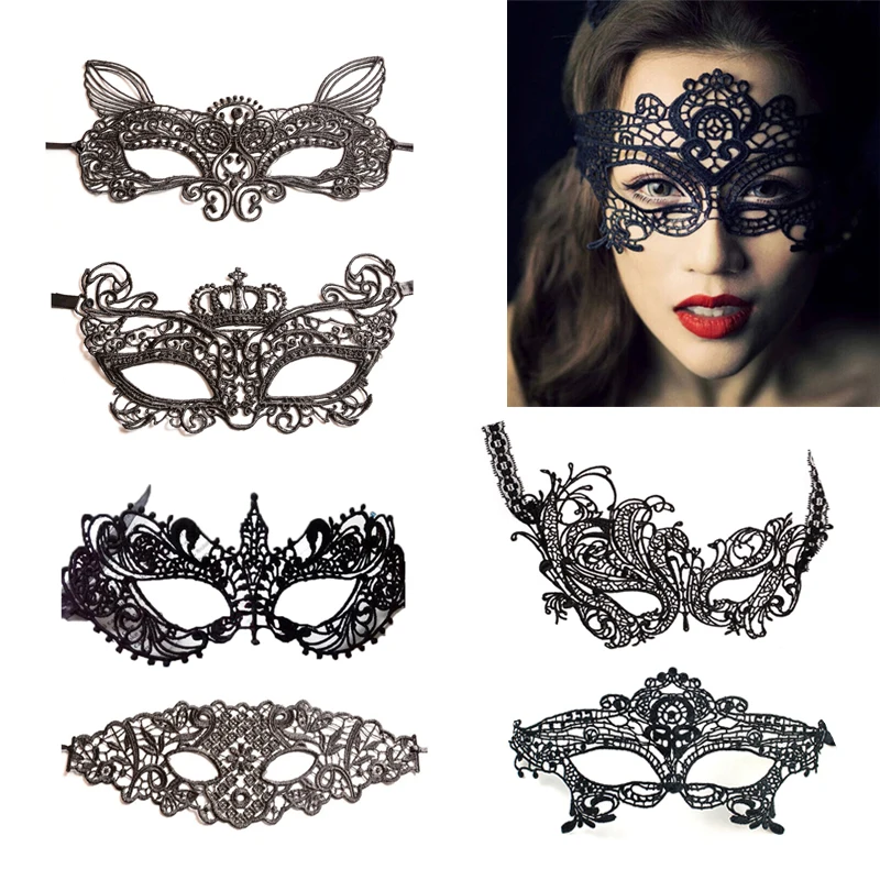 Соблазнительные костюмы для косплея из 23 шт., черные Соблазнительные вечерние маски, женское белье, Женская эротическая кружевная маска для ночного клуба и вечеринки с вырезами на глаза