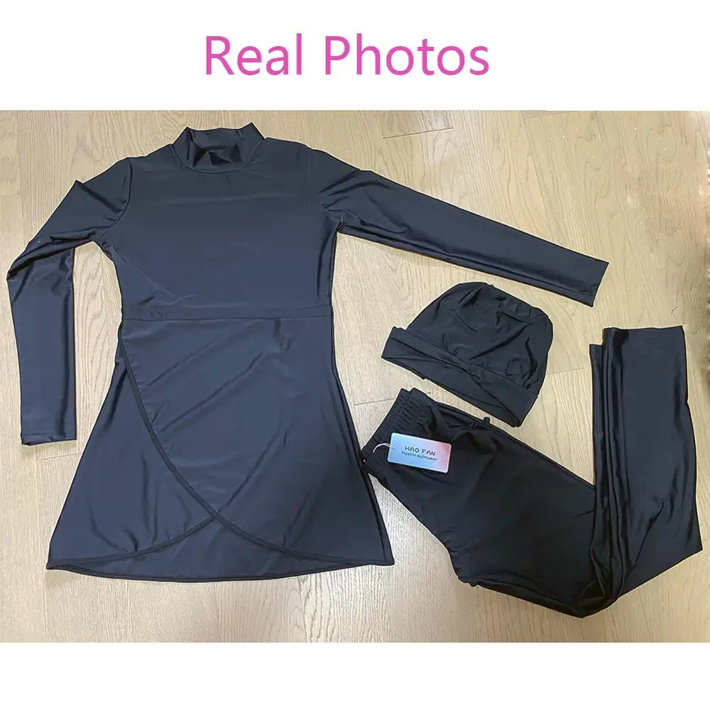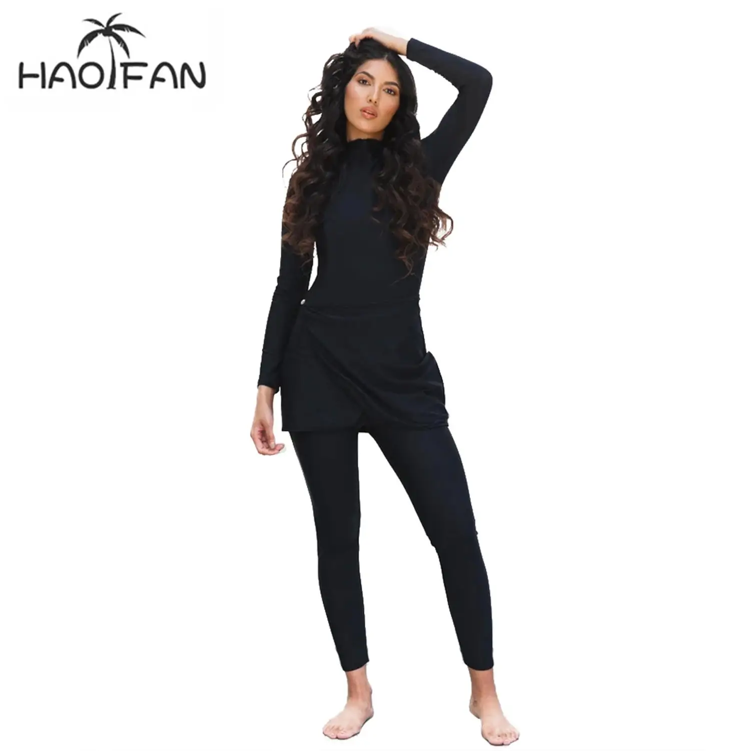 Скромный Мусульманский купальник HAOFAN, полностью черный купальник Буркини, ислам, бикини, хиджаб с полным покрытием, пляжная одежда, размера плюс, 3 шт.