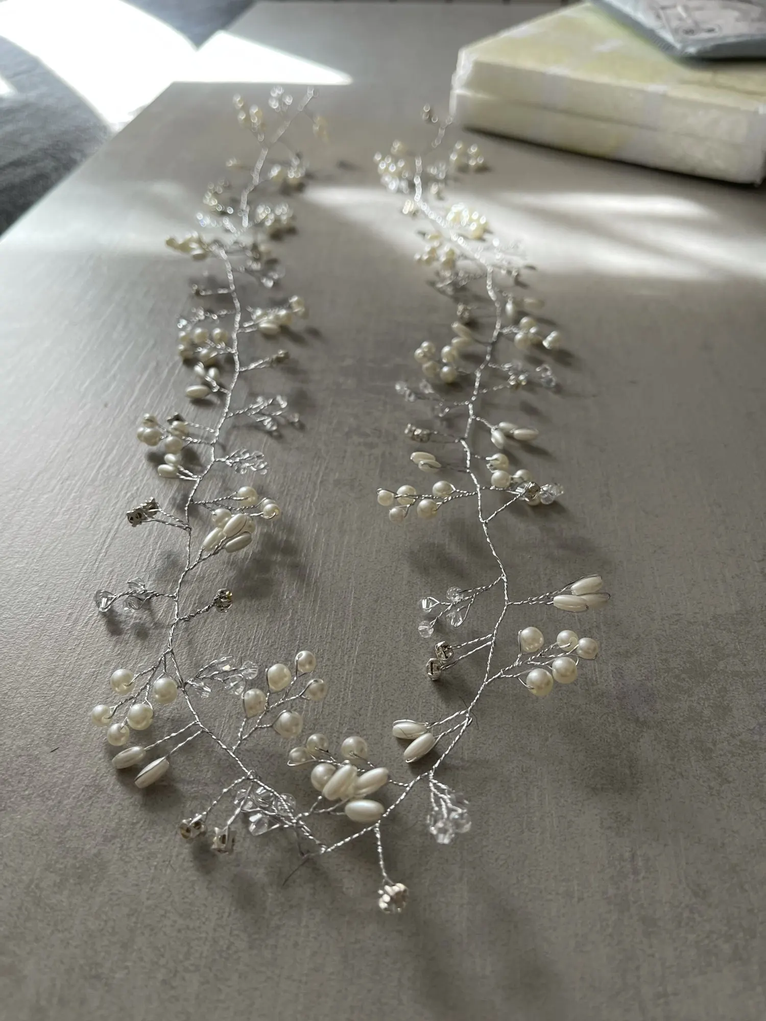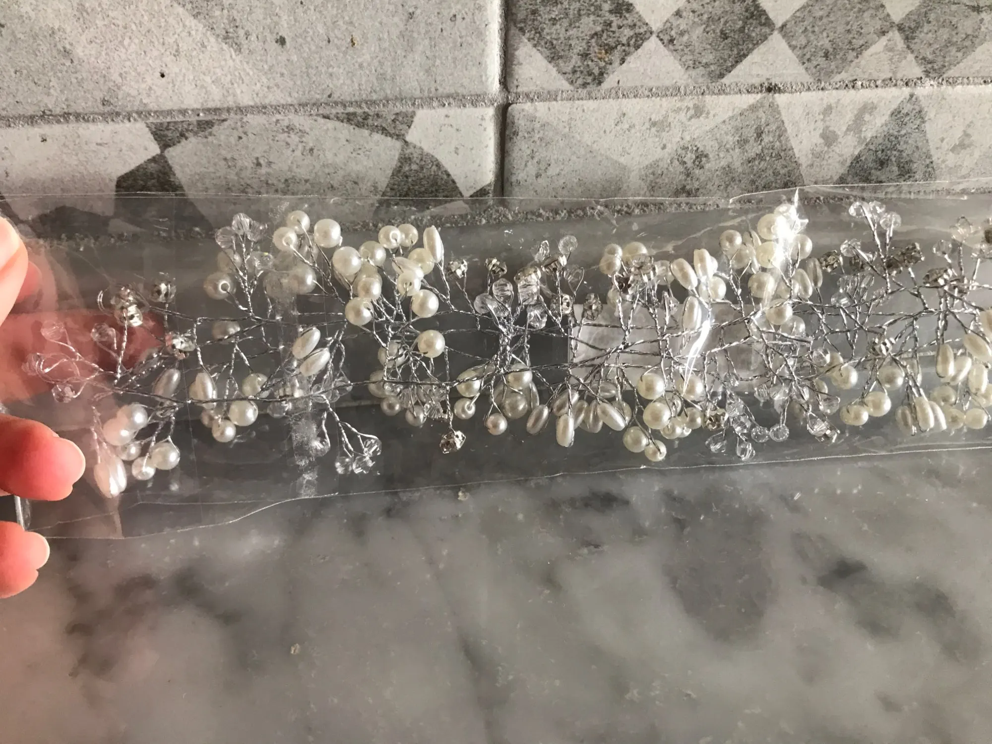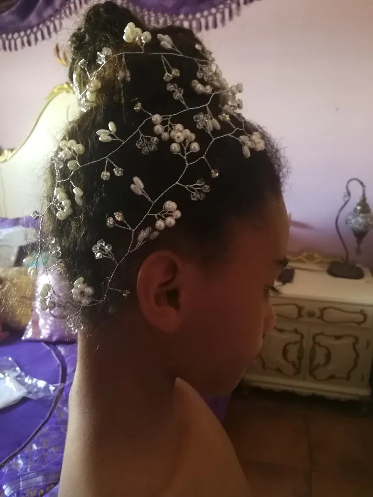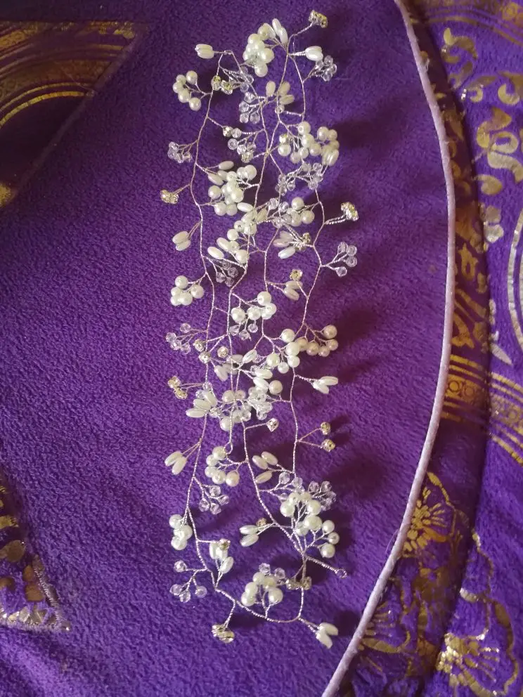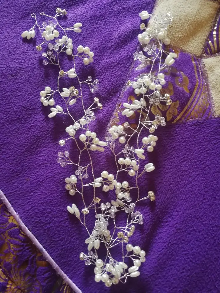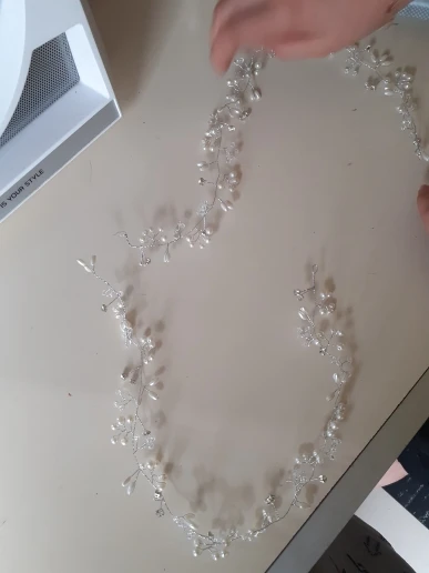 Прибыл через 12 дней, заказанный размер Уважаемый, очень красивый, очень белый и блестящий, Плетеный металлом, поэтому позволяет придать форму, которую вы хотите в волосах. С нетерпением жду возможности попробовать это. Хорошо упакованы. Спасибо продавцу. Нет необходимости в общении.