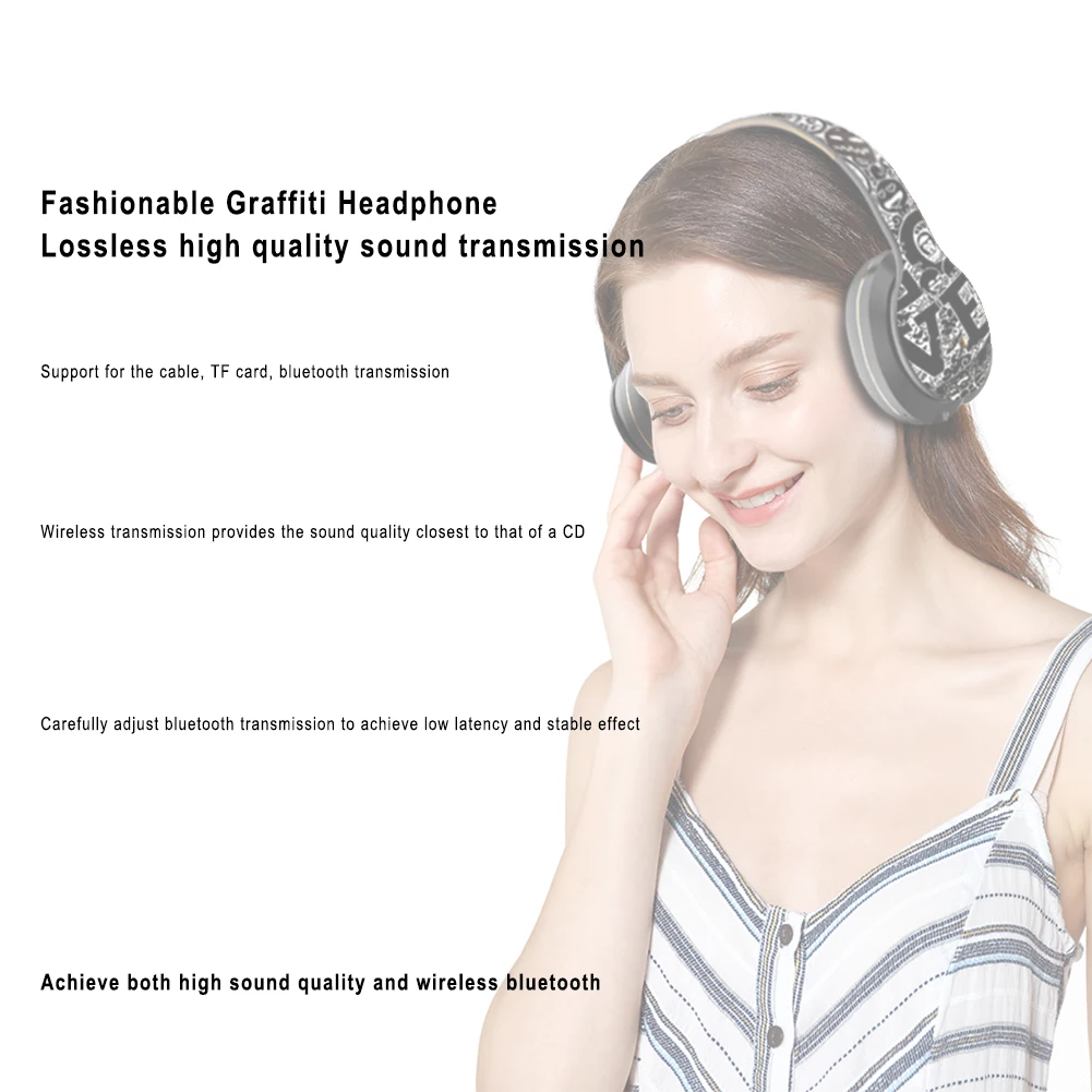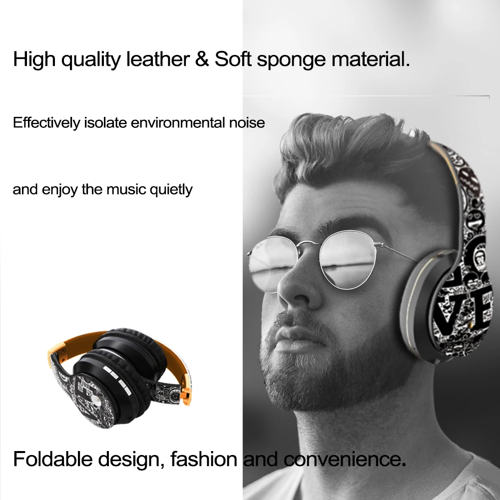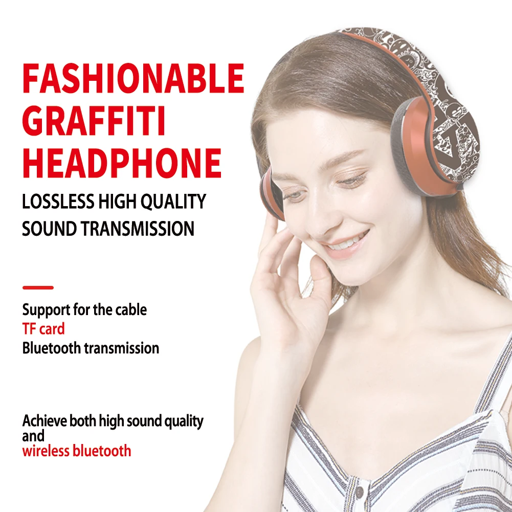 Беспроводные Накладные наушники граффити с Bluetooth 5,0, складные ...