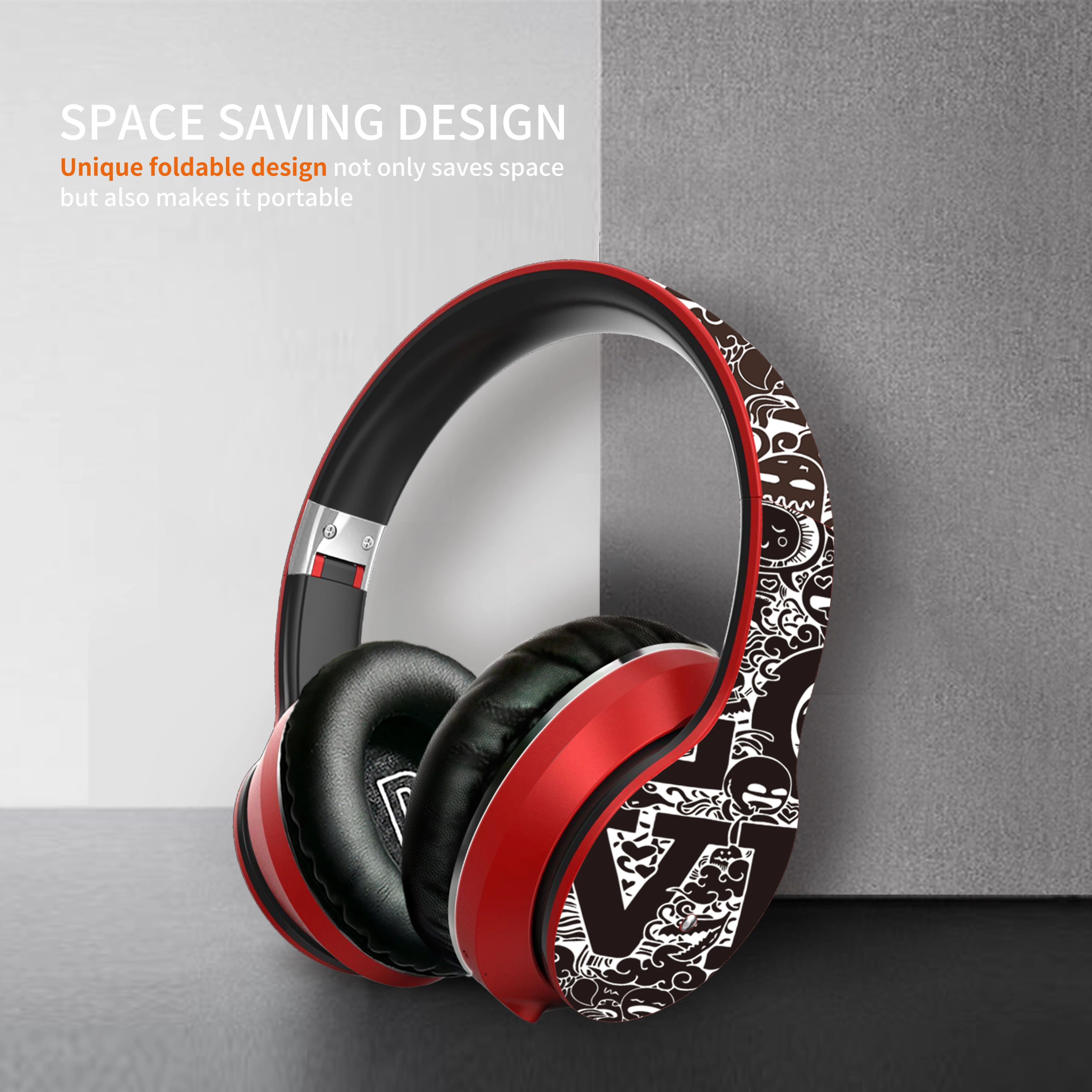 Беспроводная гарнитура IKOLE, Bluetooth 5,0, модные наушники с граффити, складные глубокие басы, окружающие Hi-Fi, стерео игровые музыкальные наушники с микрофоном, поддержка TF-карты/радио/Bluetooth, беспроводной + проводной мультирежим для смартфона и ПК, компьютера