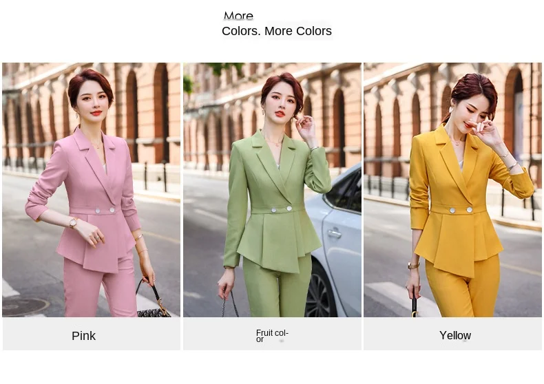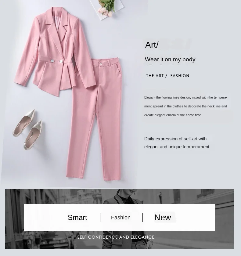 Розовый костюм Женская одежда 2020 осень и зима деловые костюмы из двух частей длинный рукав Тонкий Блейзер и брюки комплект для женщин