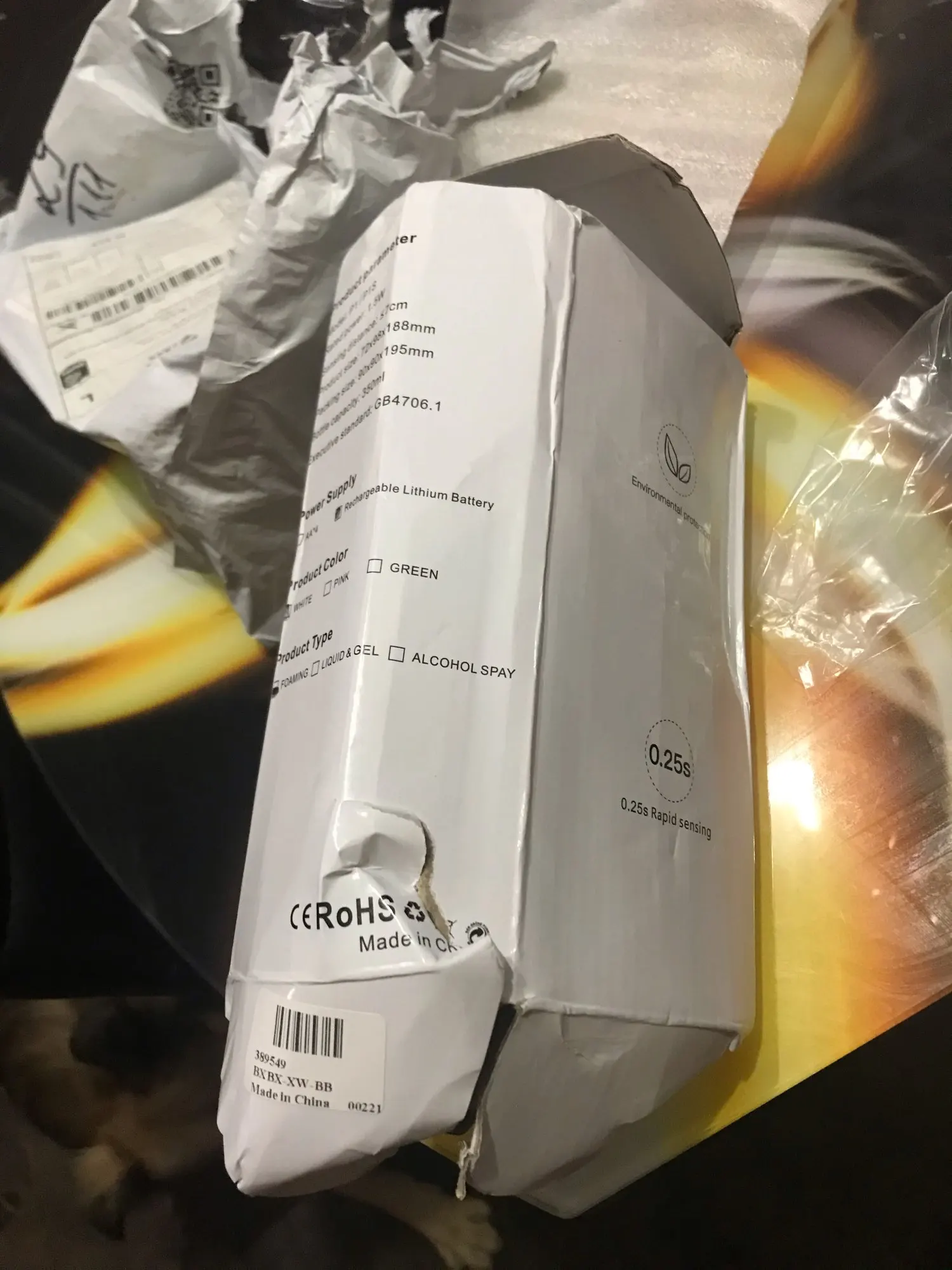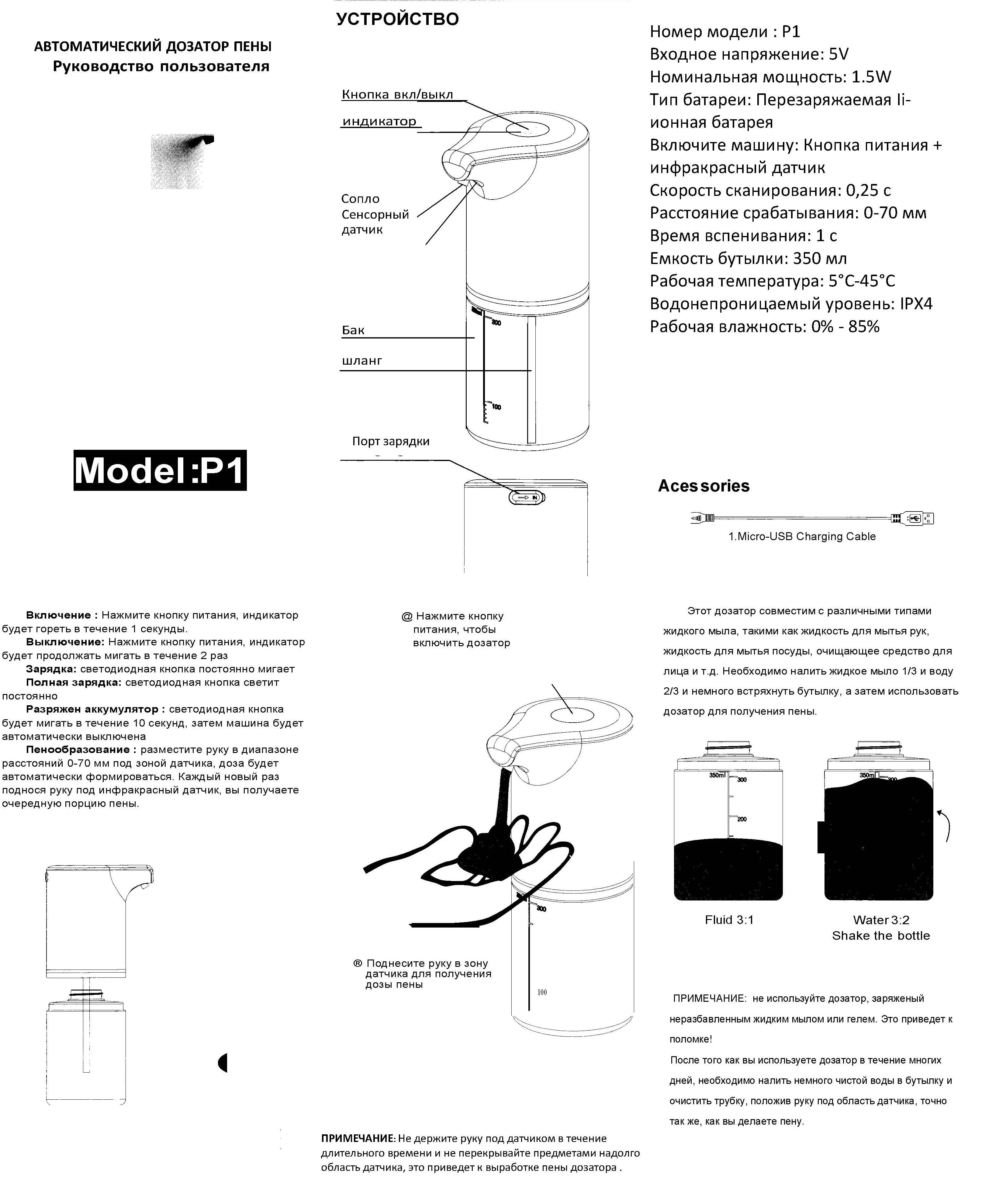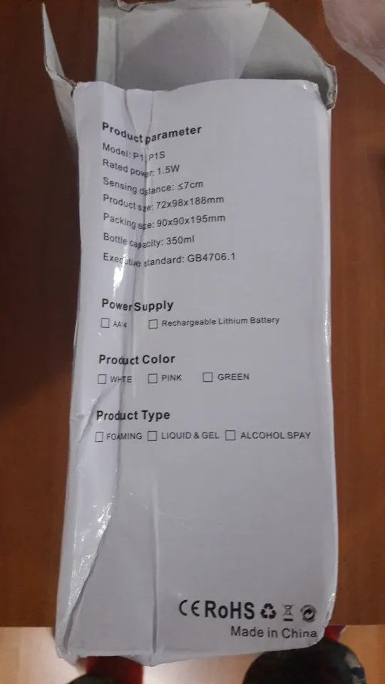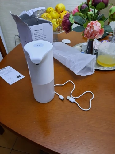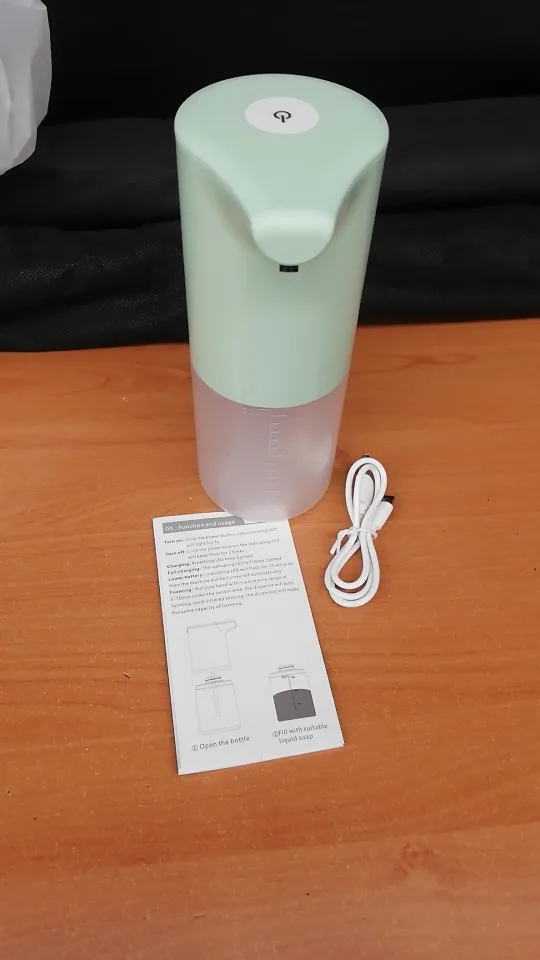 Совместимый продукт, работает очень хорошо, с usb-кабелем для зарядки аккумулятора. Для получения пены необходимо смешать жидкое мыло и 50/50 воду. От cons, прибыл в хорошо поврежденную коробку, к сожалению, распределение мыла не повреждено.