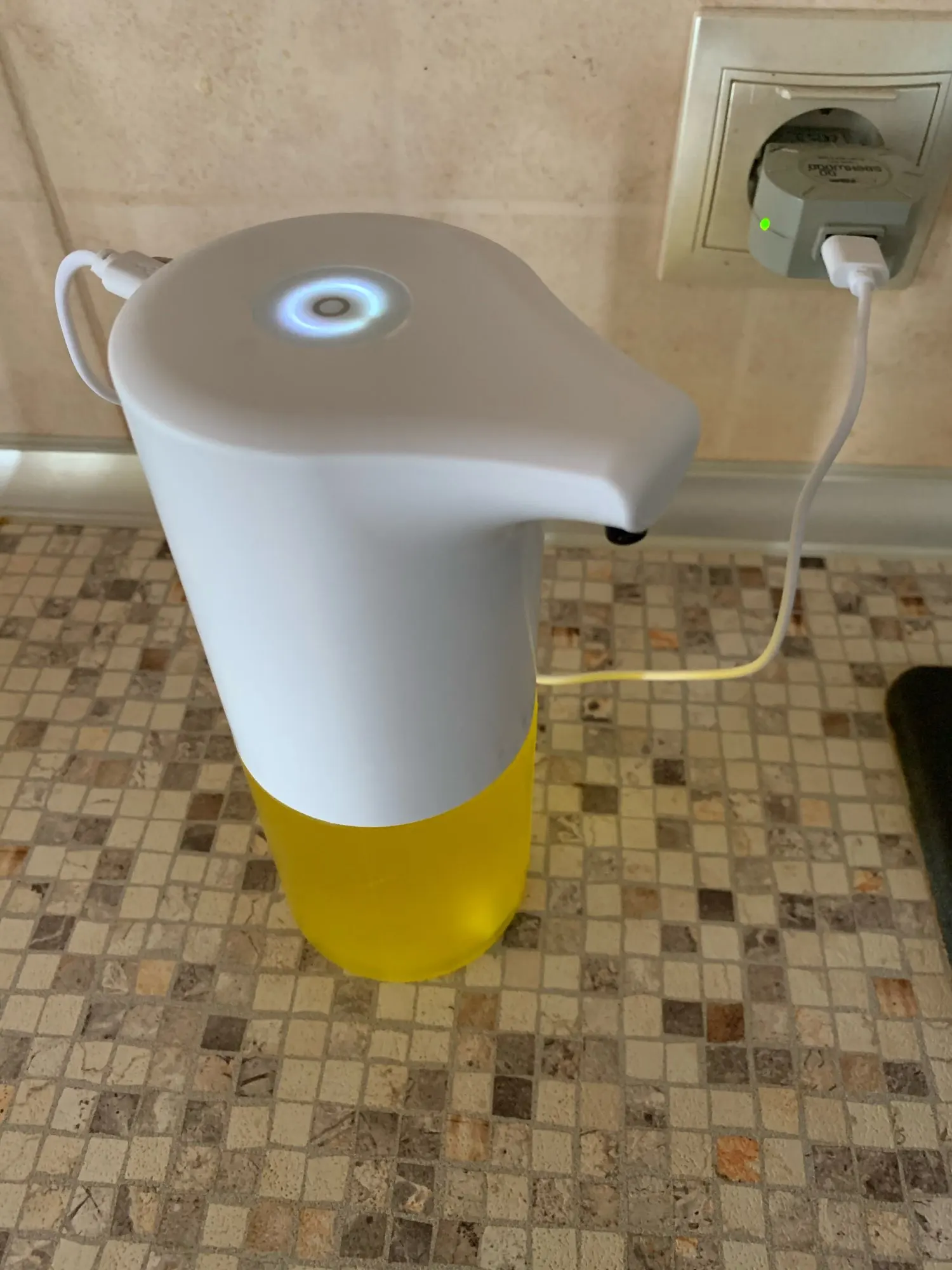 Отличный диспенсер. Развожу мыло с водой 1:3 и выходит нормальная пена хорошего объёма. Гудит тихо. Возьму ещё на кухню для моющего средства. Посылка шла долго, месяца 3, думал уже открывать спор.