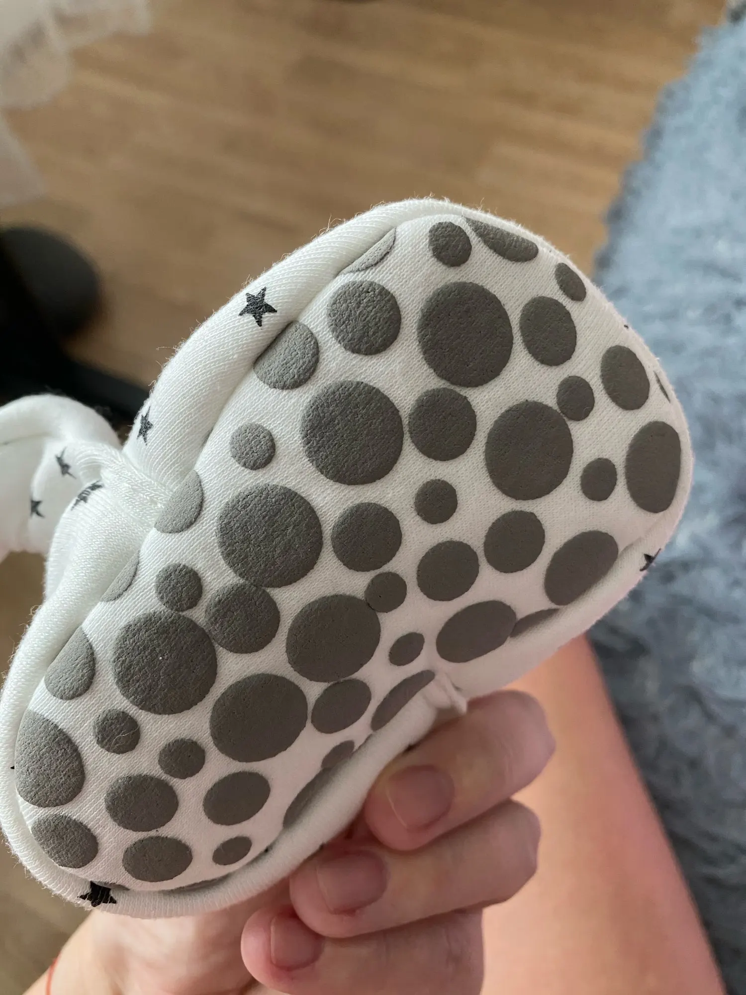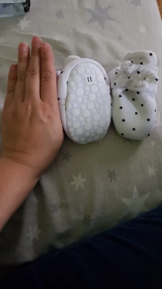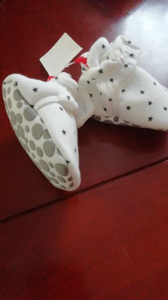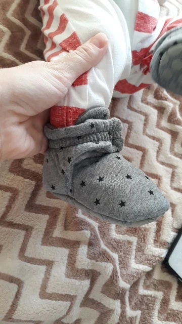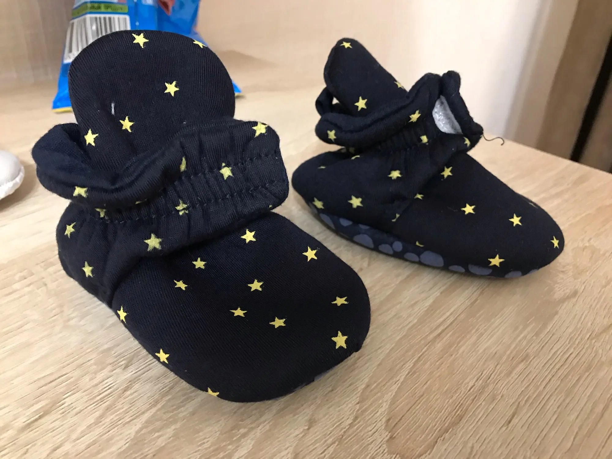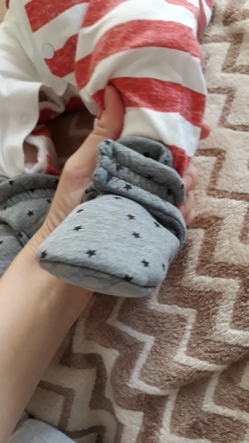 Классная обувь. превзошла мои ожидания. Очень удобно одевать на ножку малыша, ребенок не испытывает дискомфорт при одевании. Думаю, что закажу еще одну пару большего размера. Моей дочке 3 месяца, остался запас в 2 см. Тепленькие. Буду использовать при походе в поликлинику, или надевать малышке когда сидит в машине, это однозначно лучше чем просто носочки.