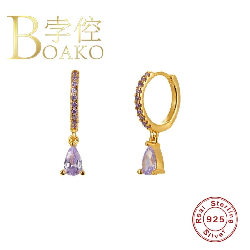 BOAKO 925 стерлингового серебра Серьги обручи для пирсинга, серьги для женщин, сереброЗолотые украшения модный дизайн, Lurury со стразами