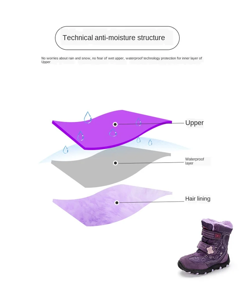 Ботинки ULKNN детские, для девочек и мальчиков, зимние, теплые, водонепроницаемые, Нескользящие