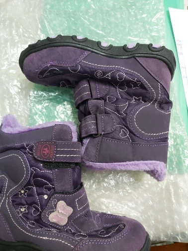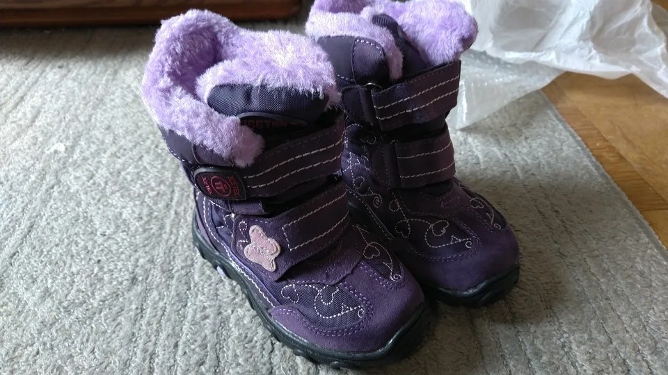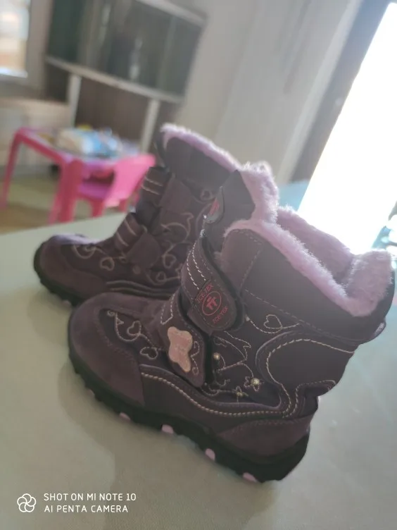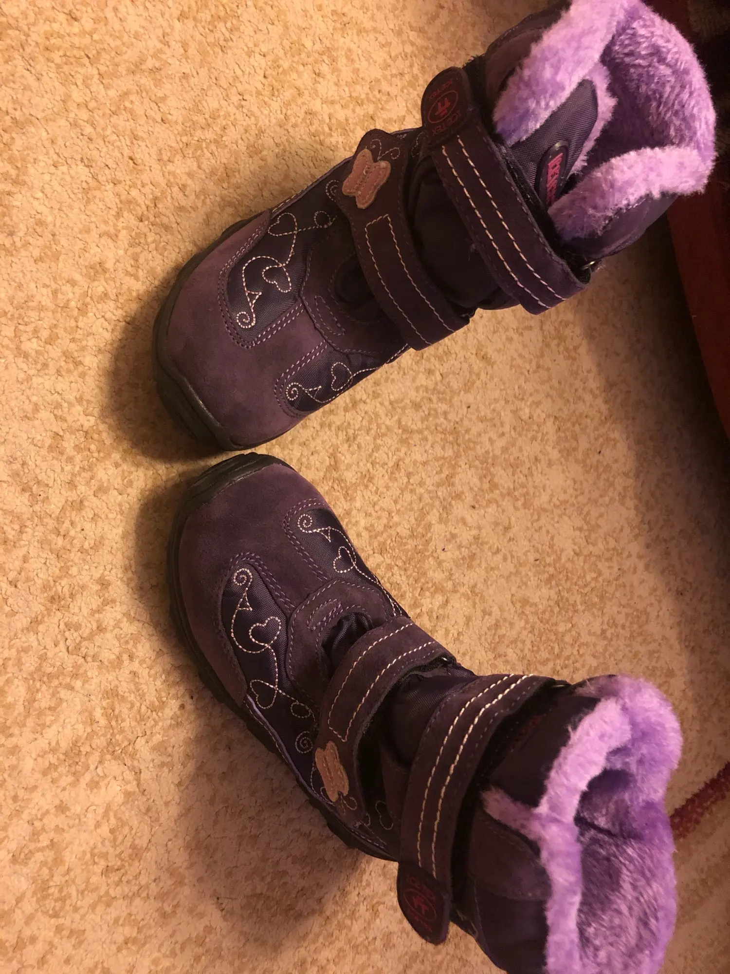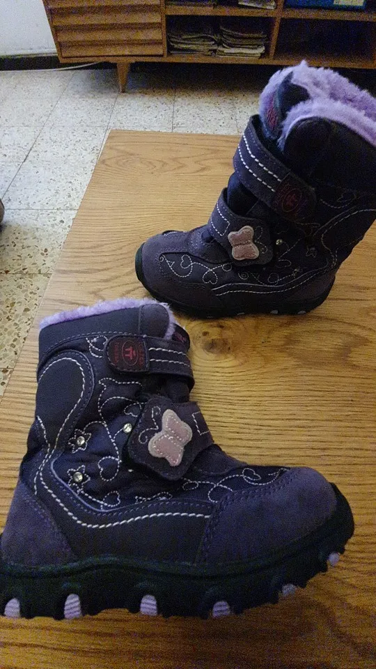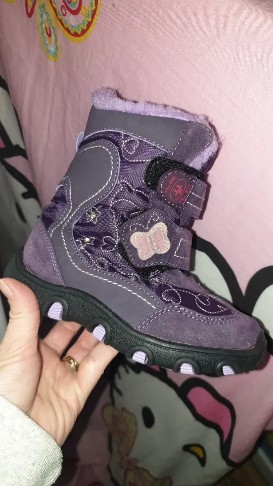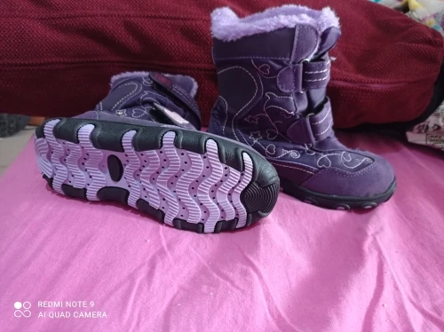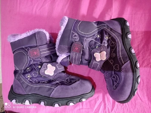 Красивые теплые ботинки для зимы, не очень прочные, так мало поддержки. Не очень подходит для прогулок на весь день, но отлично подходит для зимнего похода. Размер 29 заказал и хорошо подходит для моей девочки с размером 28. В течение 8 дней дома.