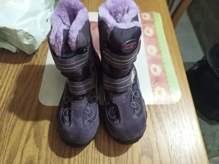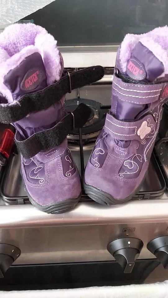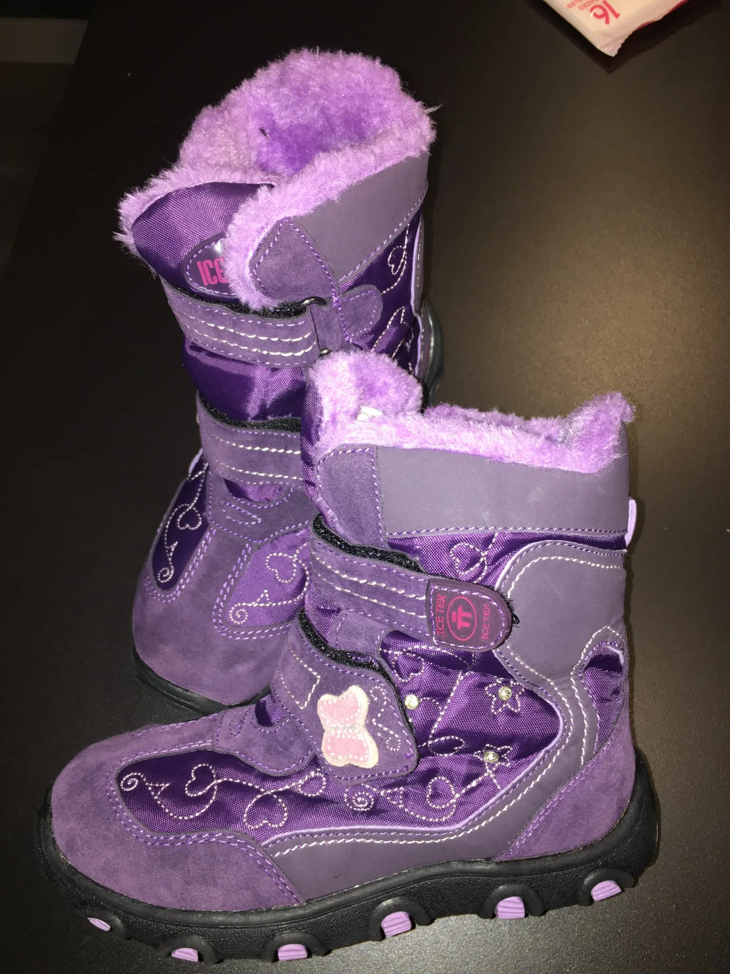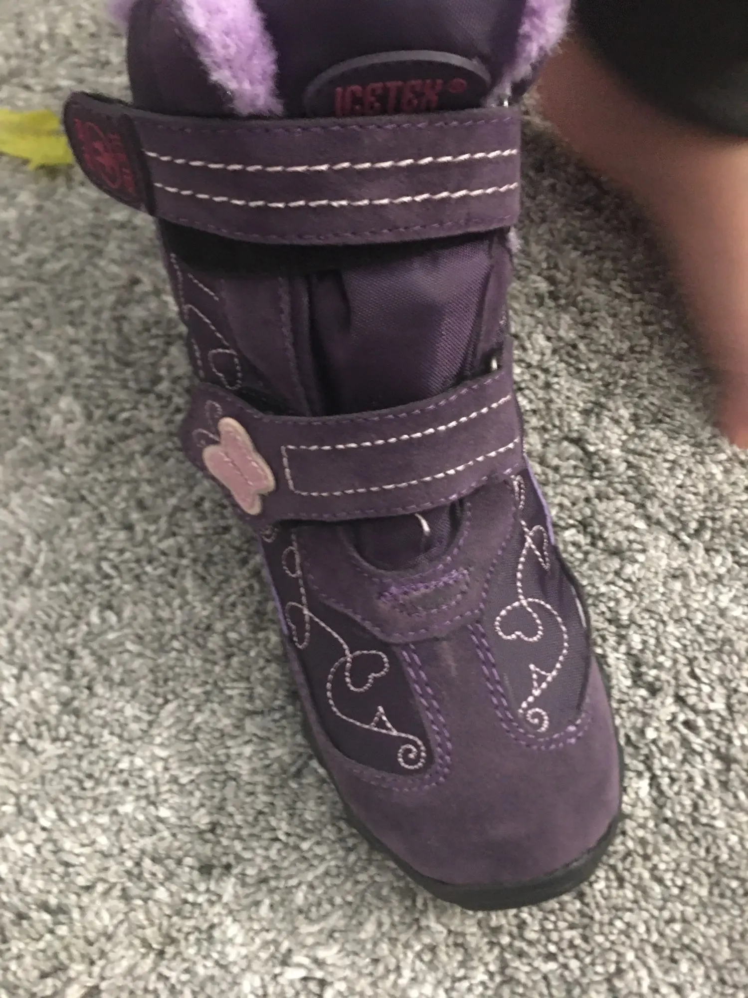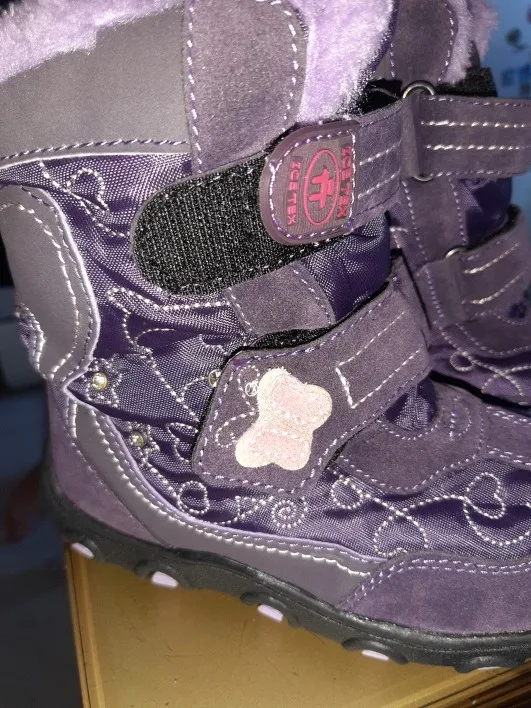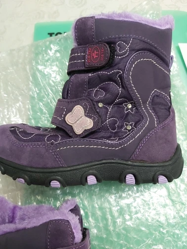 Красивые теплые ботинки для зимы, не очень прочные, так мало поддержки. Не очень подходит для прогулок на весь день, но отлично подходит для зимнего похода. Размер 29 заказал и хорошо подходит для моей девочки с размером 28. В течение 8 дней дома.