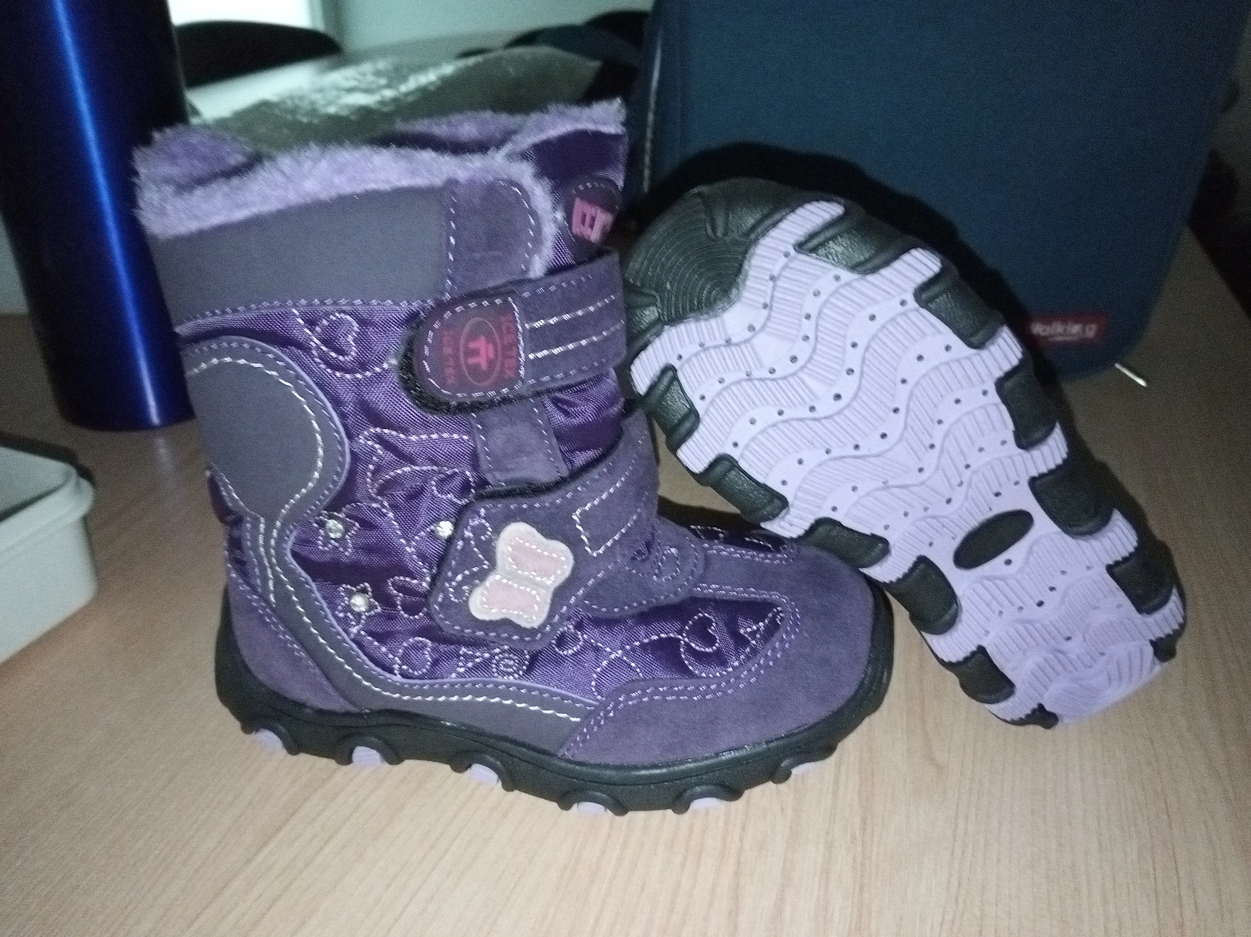 Отличные сапожки для дочки 4 лет. Я приятно удивлена приличным качеством. Размер как указан в сетке продавца- нога дочки 16.5 см, стелька 17.5 см, как раз 1 см места, ей комфортно. Обязательно замеряйте ногу на листке бумаги у стенки, не ориентируйтесь на привычные вам размеры обуви. Тогда получится подобрать правильный размер сапог. Внутри есть утеплитель. Немножко виден клей вдоль подошвы, но мне это не принципиально. Очень долго шел заказ - заказала 6 ноября, дошли до Швейцарии только 9 декабря, я уже отчаялась их дождаться. Напишу доп отзыв после проверки снегом.