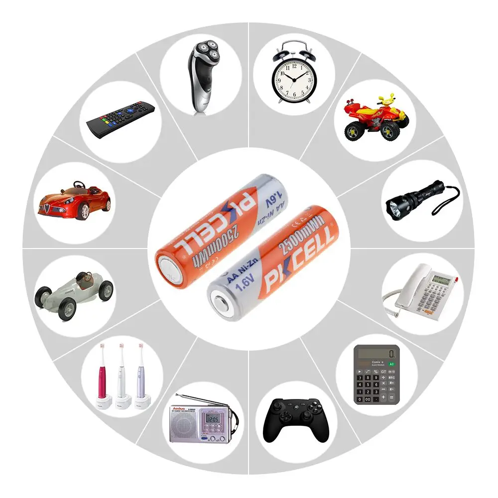 Аккумуляторные батарейки PKCELL NI-Zn AA, перезаряжаемые батарейки высокого напряжения для камер и игрушек, 1,6 в, МВтч