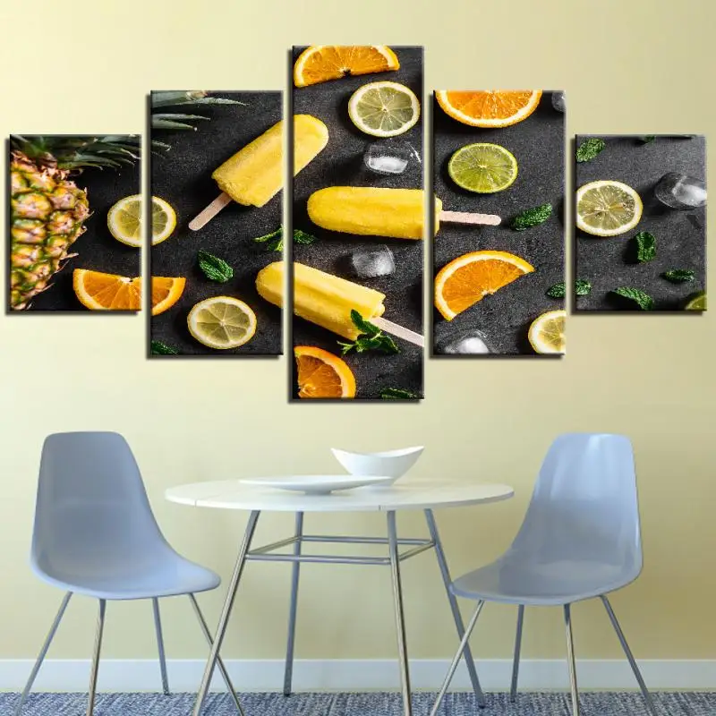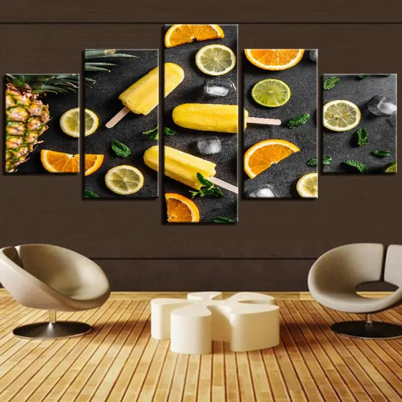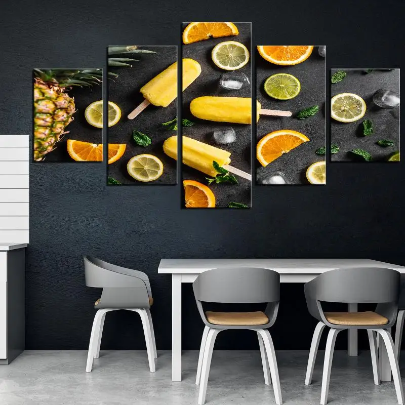 Холст с принтом фруктов, лимона и апельсина, Бескаркасный плакат, для украшения гостиной, 5 шт.