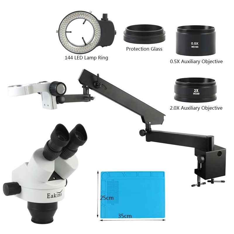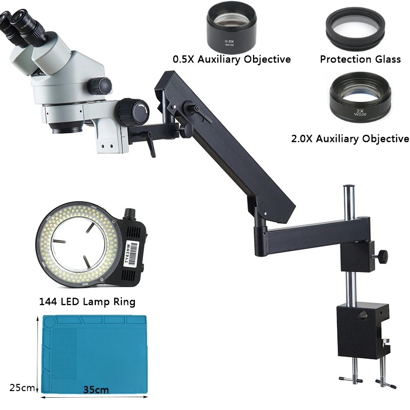 Бинокулярный стереомикроскоп 3.5X-90X, микроскоп с шарнирным зажимом, микроскоп с 144 светодиосветодиодный, подсветка