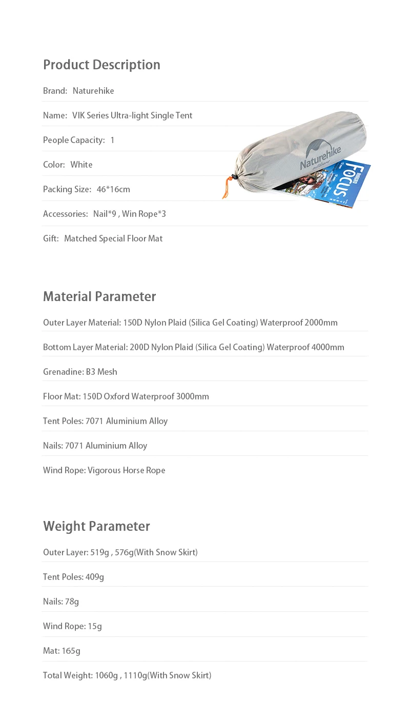 NameNaturehike VIK Series 1 Person Tent