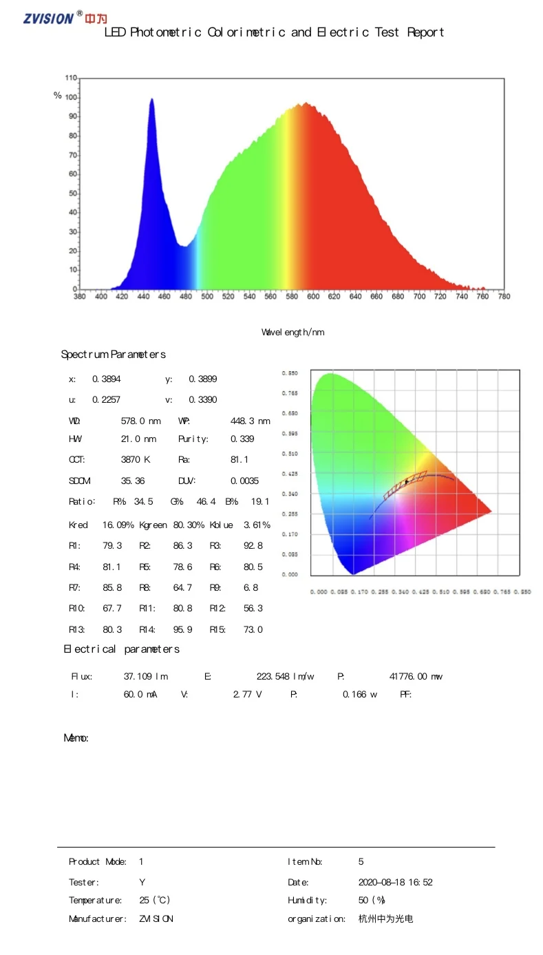Световой поток: 37 лм @ 60 мА