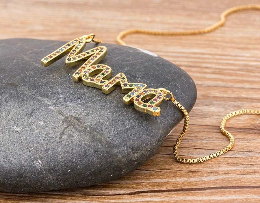 Ожерелье из меди с кубическим цирконием, мама мамочка, длинная цепочка-змейка