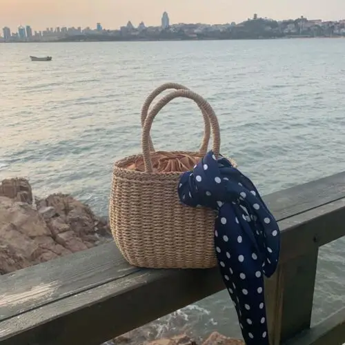Новое поступление, женская сумка для Плетеная соломенная сумка, летняя пляжная сумка через плечо из ротанга, Бамбуковая сумка, Повседневная сумка