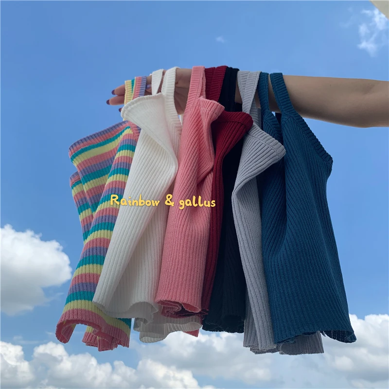 Новинка 2020, женский базовый укороченный топ, Повседневный однотонный Тонкий Топ на бретелях, Женский трикотажный эластичный топ, повседневный джемпер, топ без рукавов