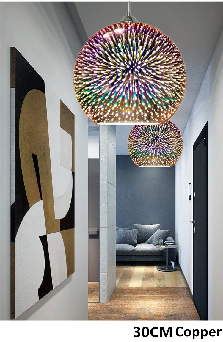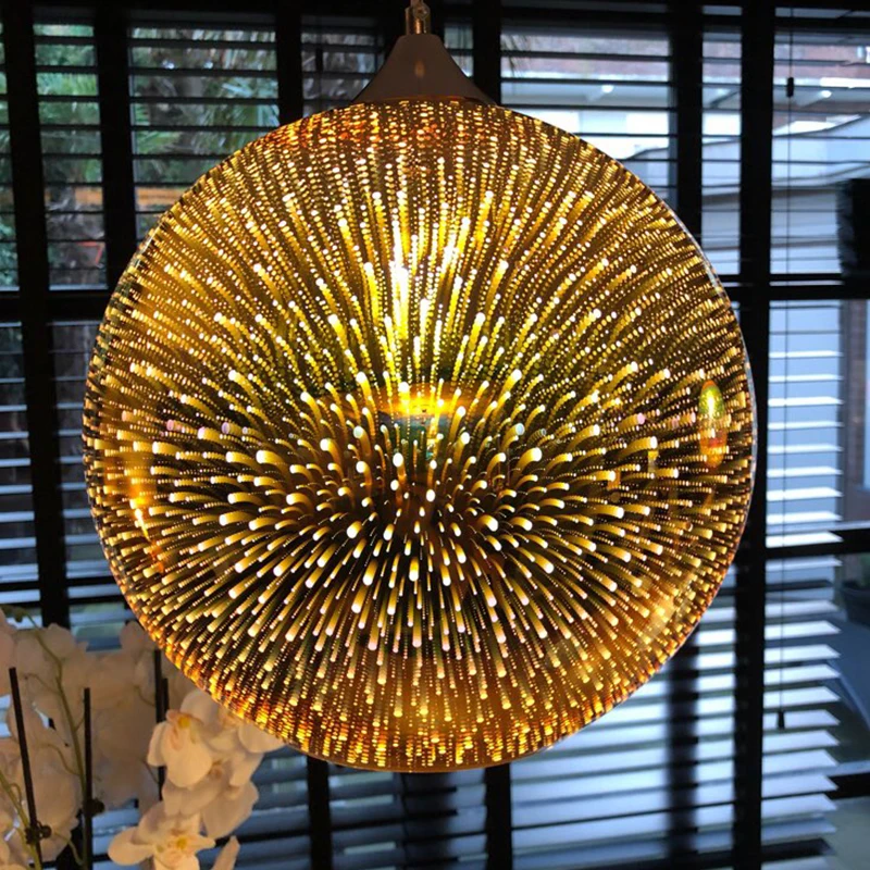 Светодиодный подвесной 3D светильник звездное небо, стеклянный шар, фейерверк, абажур, лофт, Ресторан, Бар, ресторан, кухня, Подвесная лампа