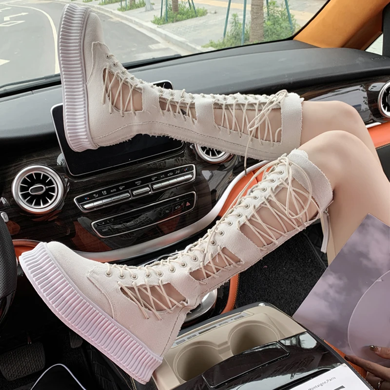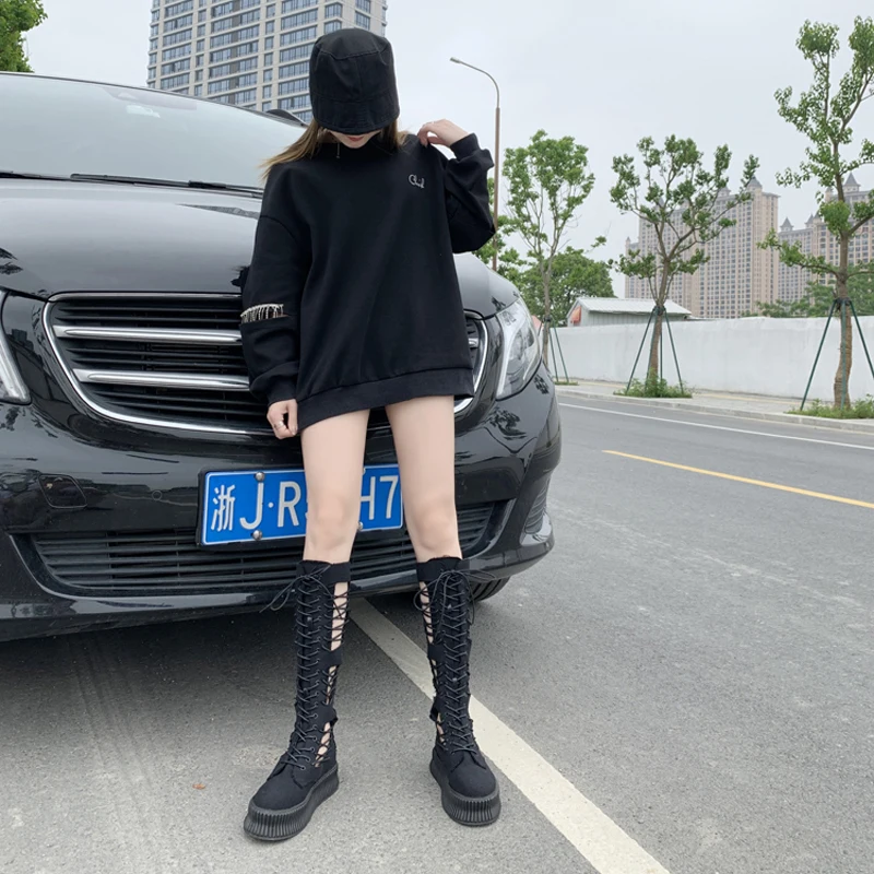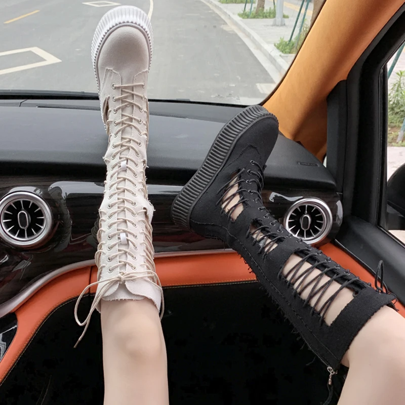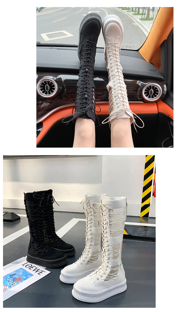 Осенние женские сапоги, женские сапоги до колена, женская черная обувь, женские брендовые сапоги, модные мотоциклетные сапоги, сетчатая повседневная обувь для девочек