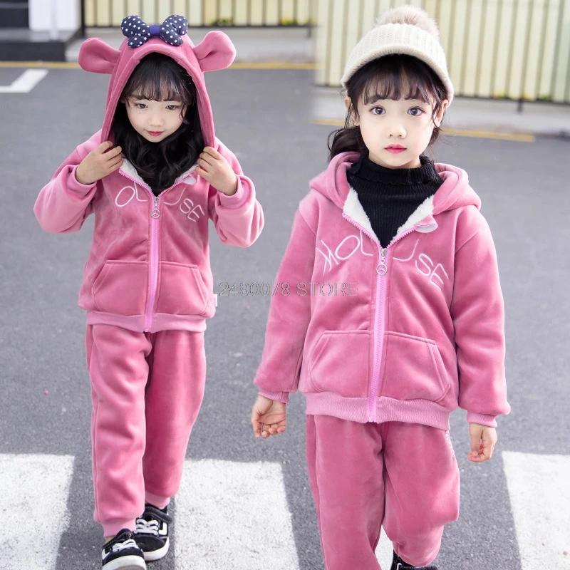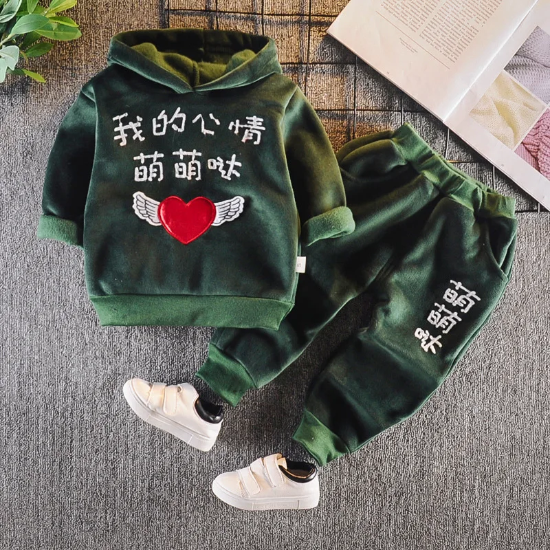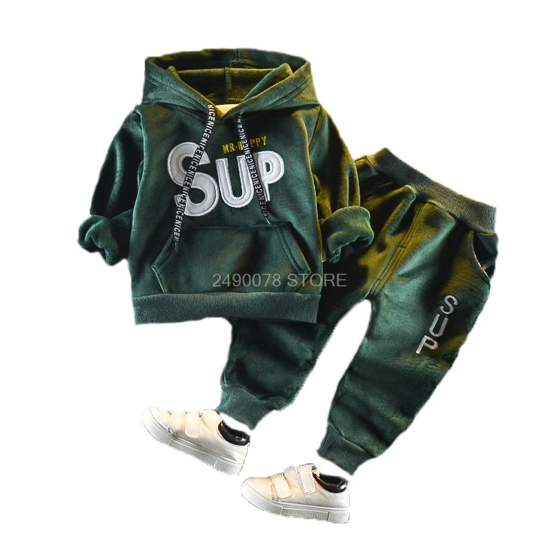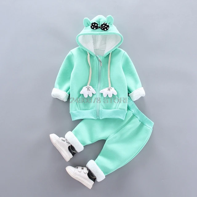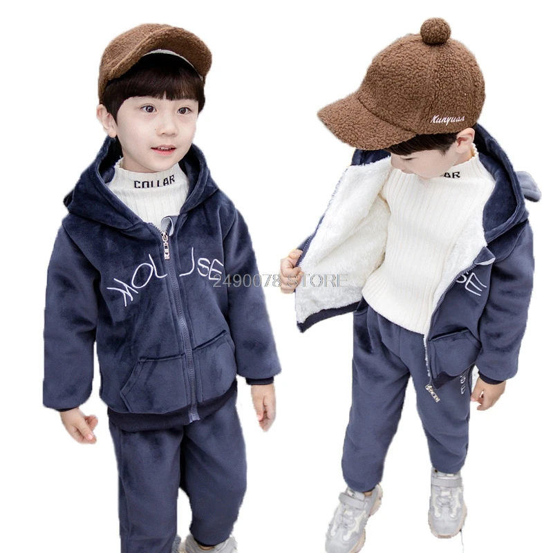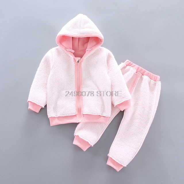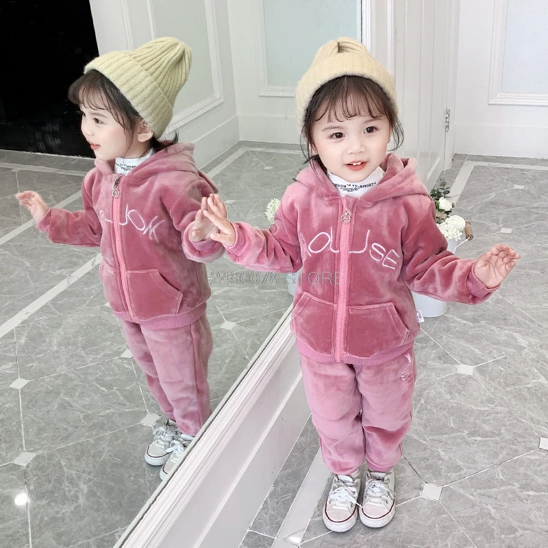 Детский уличный спортивный костюм для новорожденных мальчиков и девочек, зимний костюм, Теплый Бархатный комплект из куртки с капюшоном и брюк, комплект одежды из 2 предметов