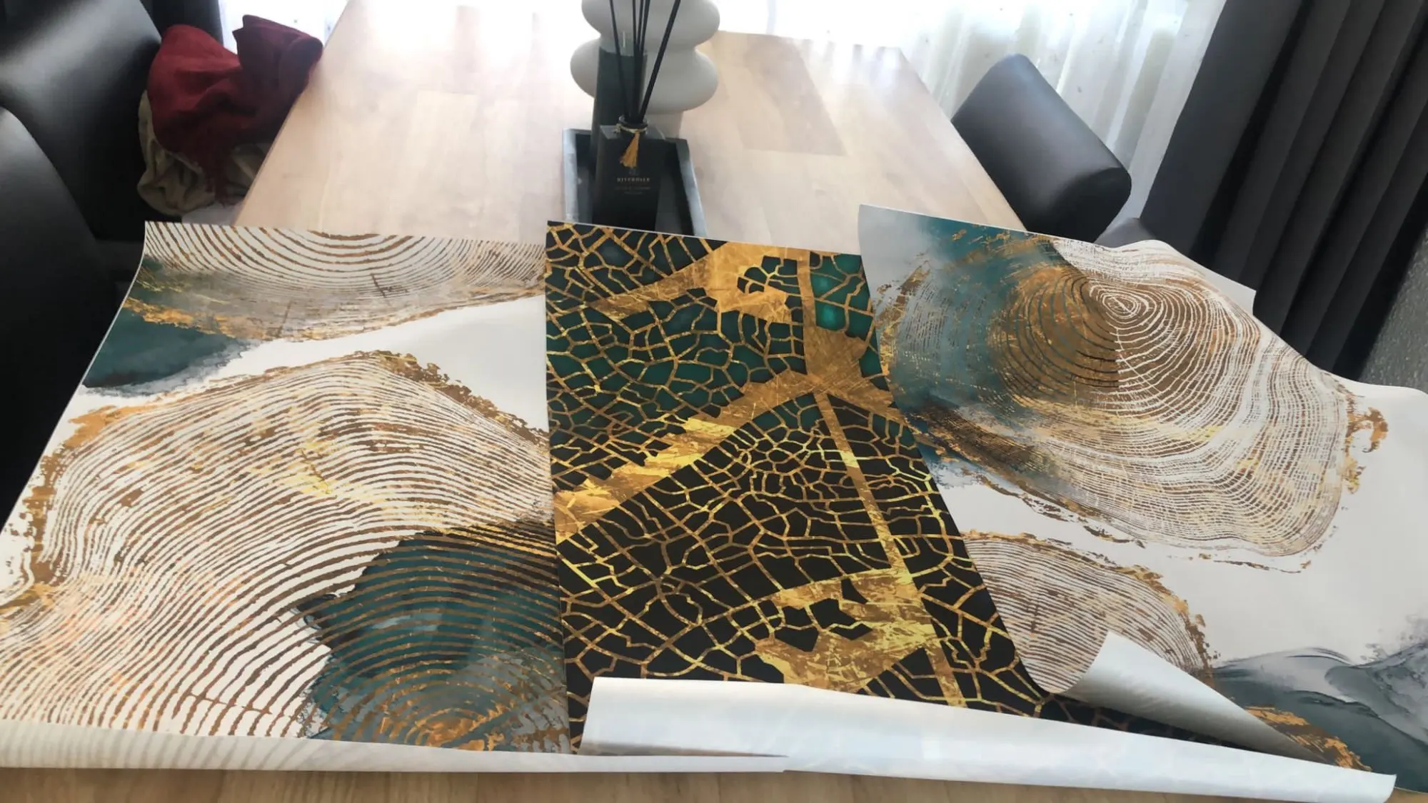 Постеры на холсте, с золотыми и зелеными листьями, в скандинавском ...