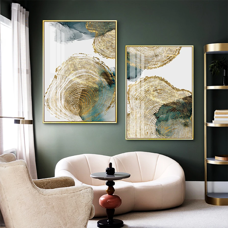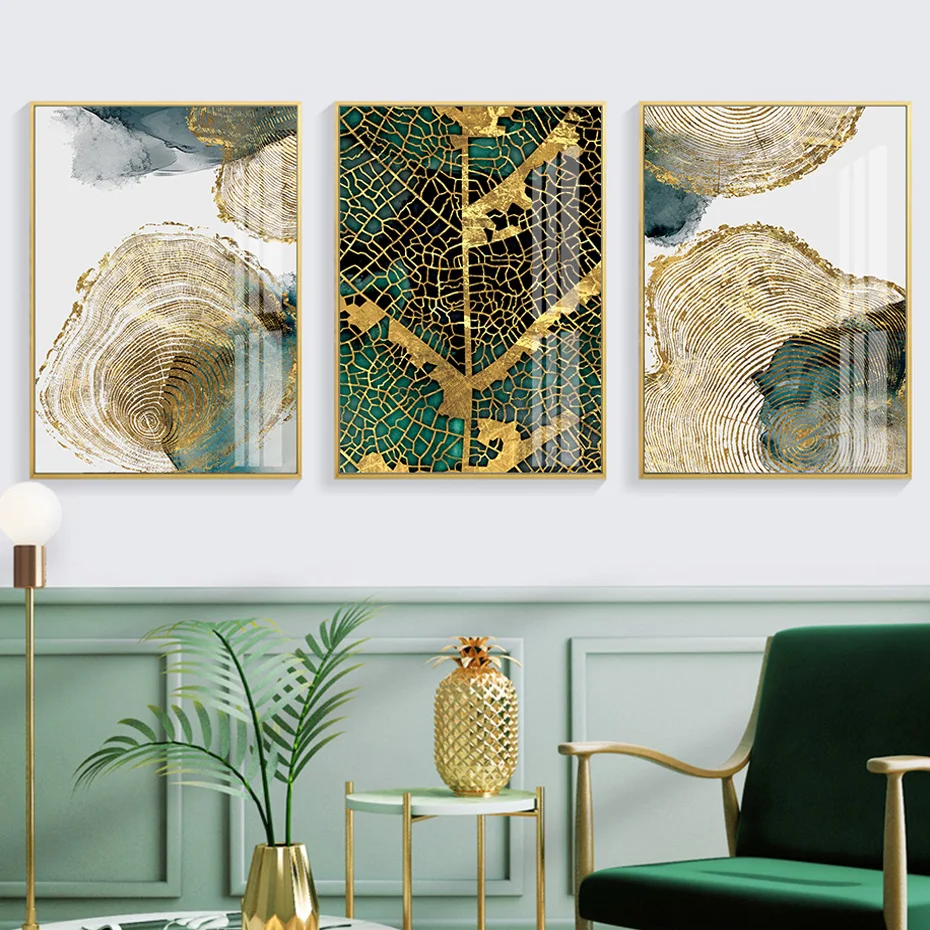 Современный абстрактный Золотой Зеленый лист тропа ежегодный постер кольцо Картина на холсте настенные художественные принты картина для гостиной спальни домашний декор