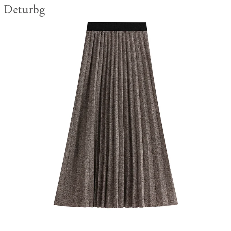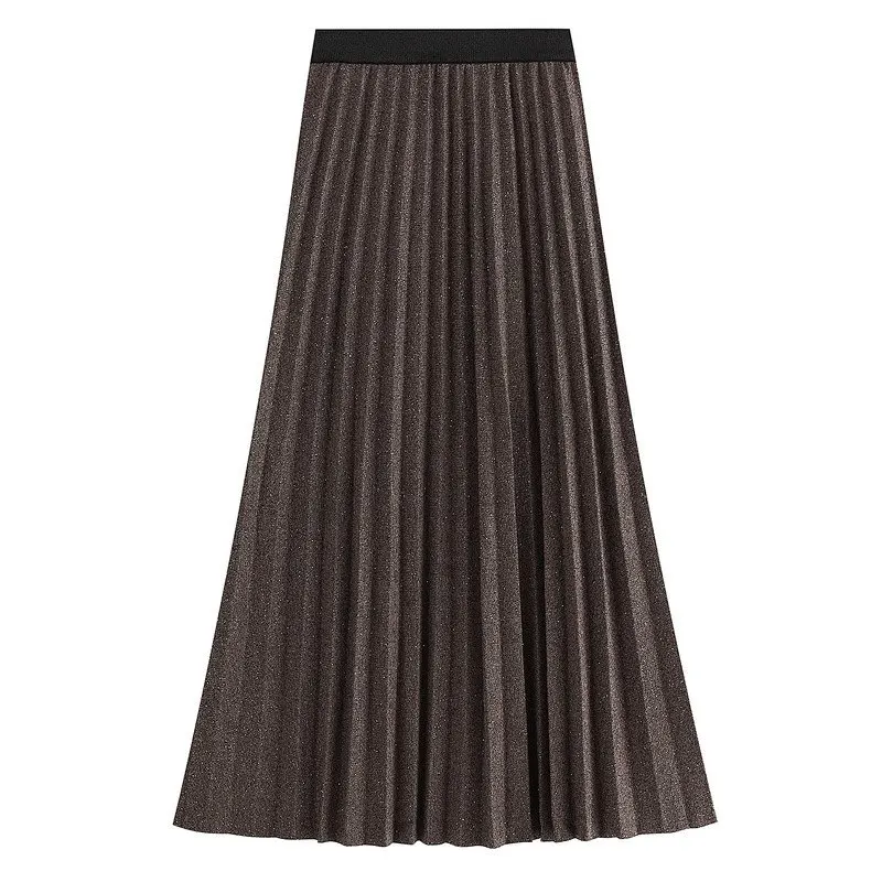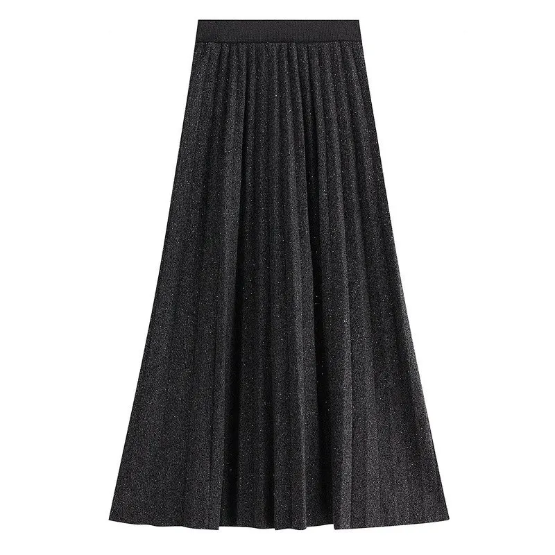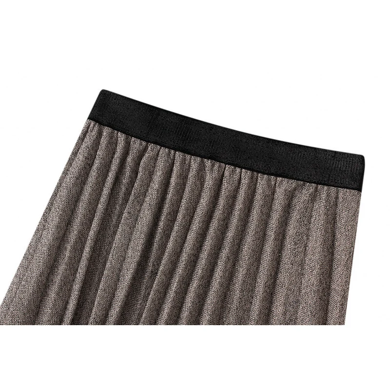 Женская модная блестящая шерстяная юбка миди, женские плиссированные облегающие вязаные юбки а-силуэта с высокой талией, Осень-зима 2021, SK582
